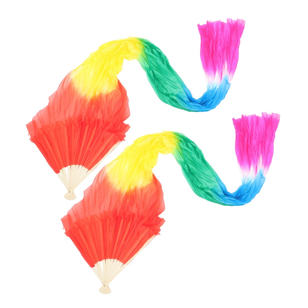 2pcs Colorful Gradient Dancing Fan: Belly Dance Accessory - Multi-Color
