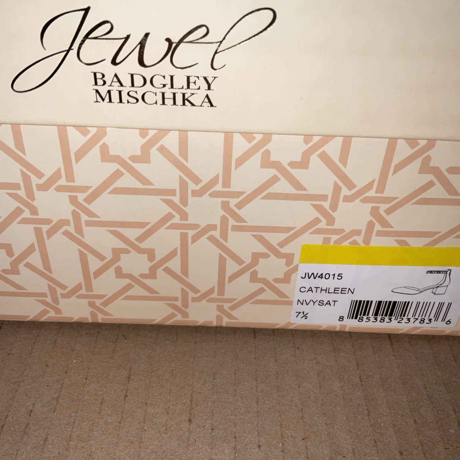 как выглядит Jewel Badgley Mischka Navy Blue Raleigh Closed Toe Ankle-Strap Pump Size 7.5 фото