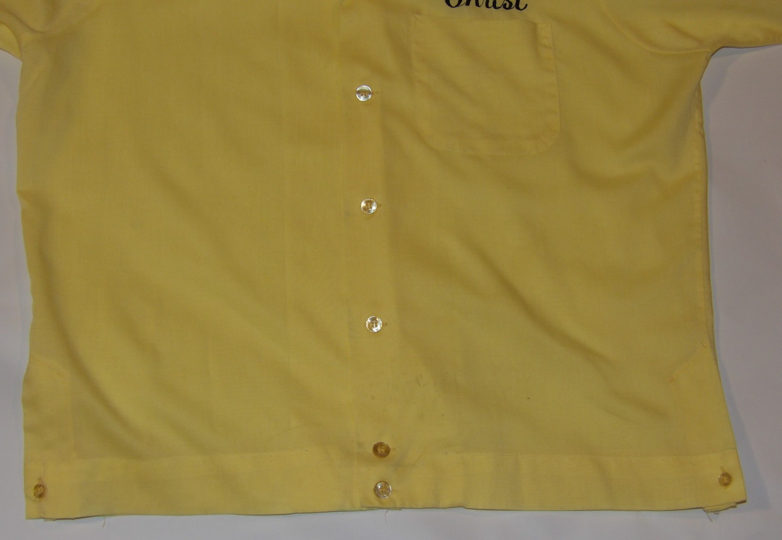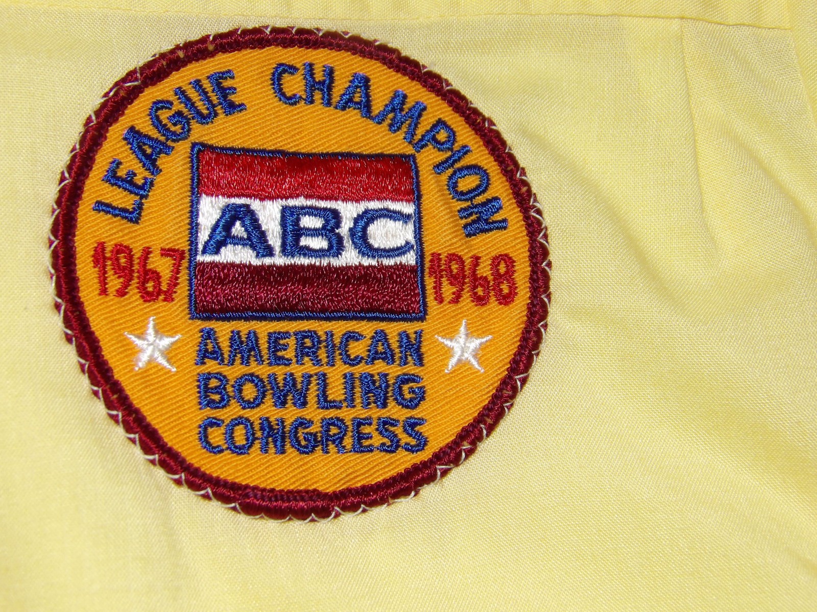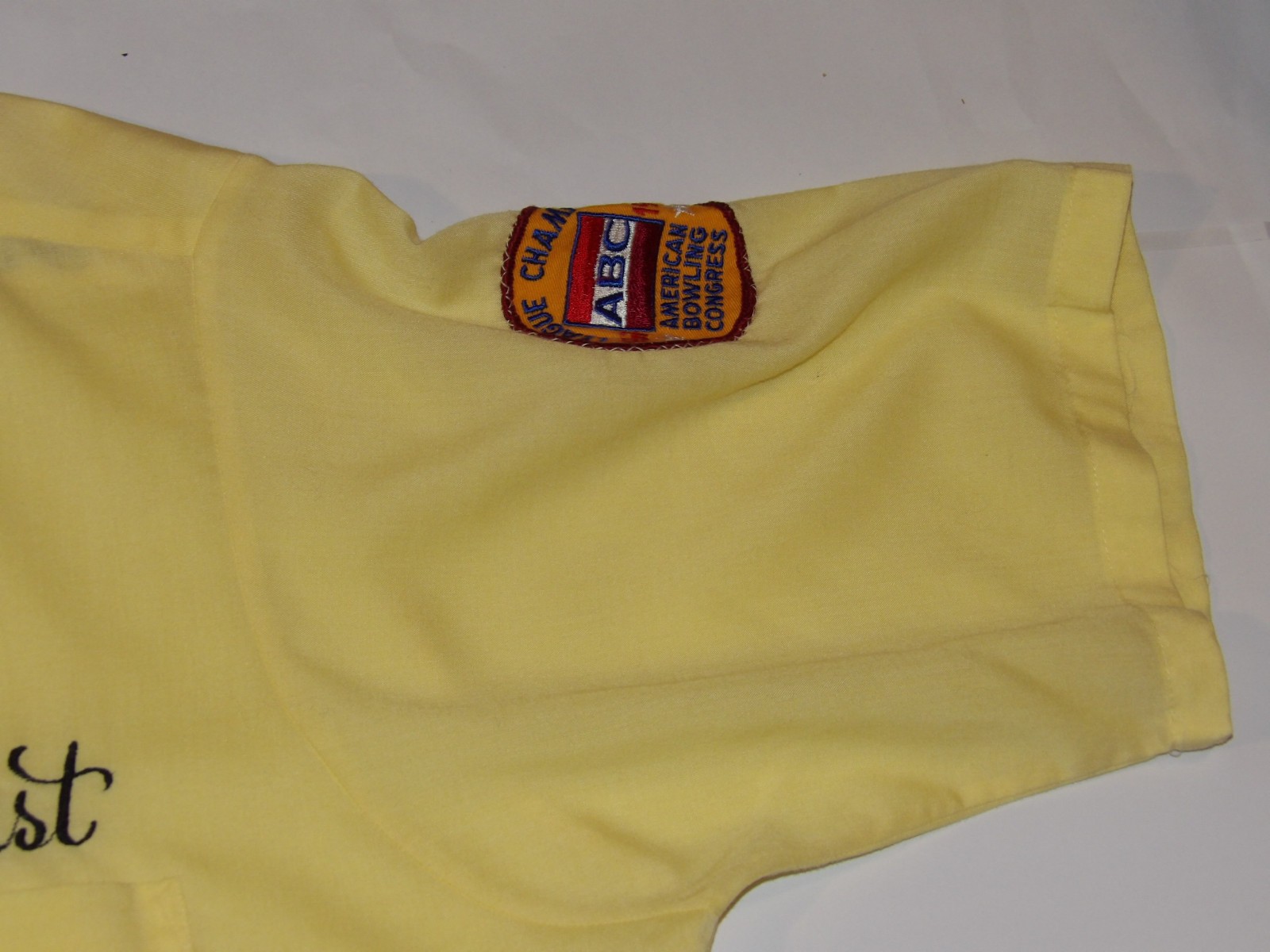 как выглядит VTG 1960s KING LOUIE EMBROIDERED BOWLING SHIRT YELLOW LEAGUE CHAMP MED-LONG фото