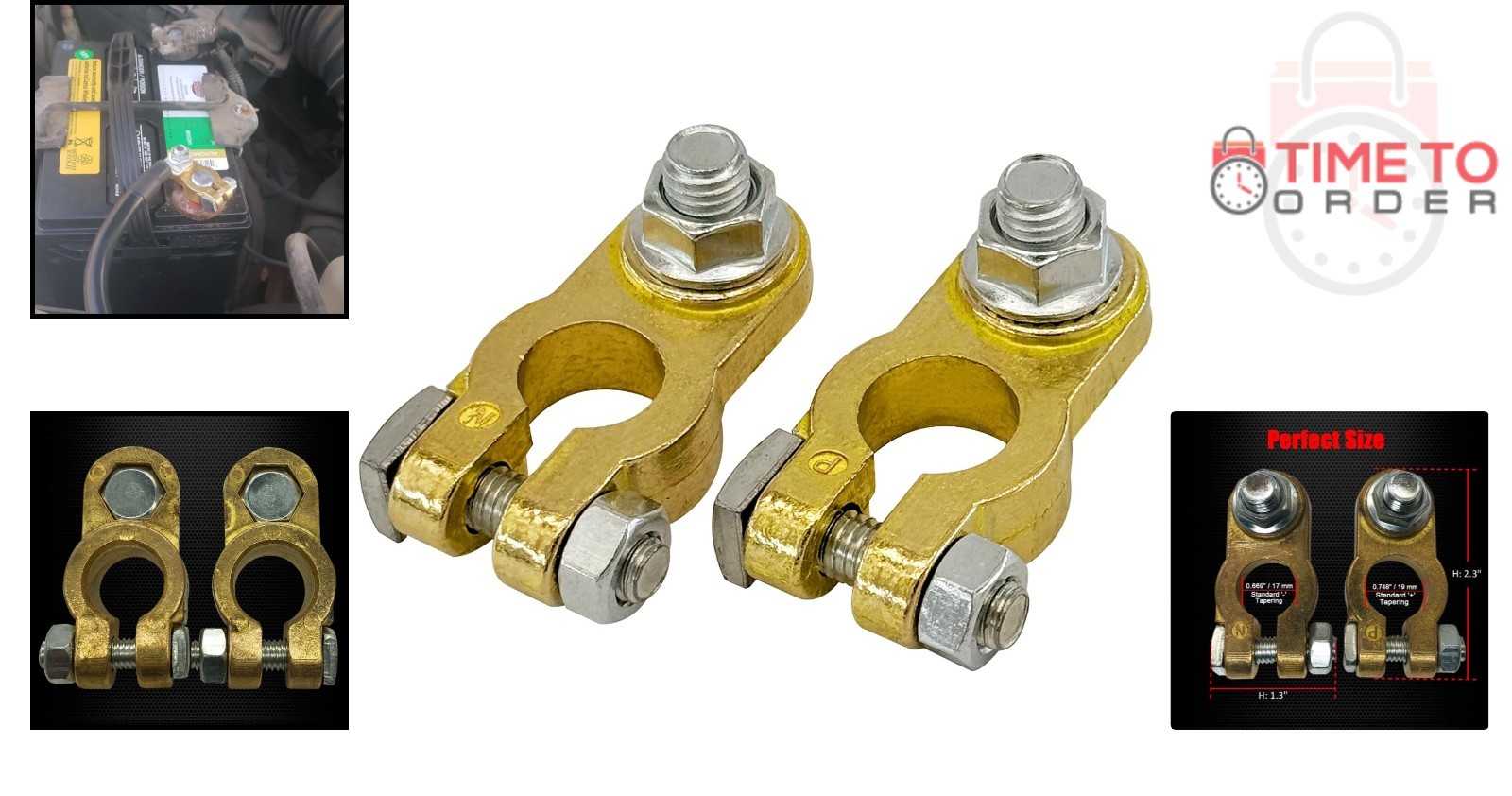Brass Battery Terminal Connectors Top Post Marine Car Boat RV 1 Pair