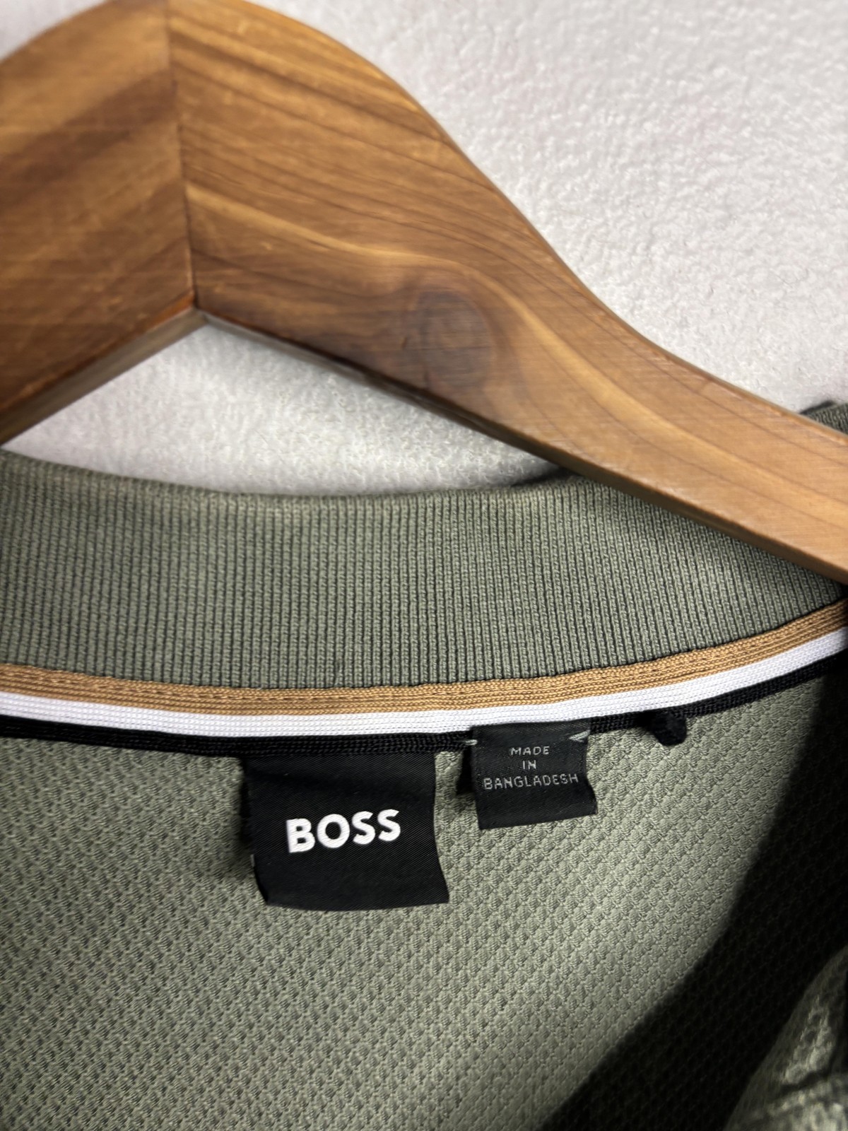 как выглядит BOSS Hugo Boss Polo Shirt Mens XL Green Pique Contrast Piping Short Sleeve фото