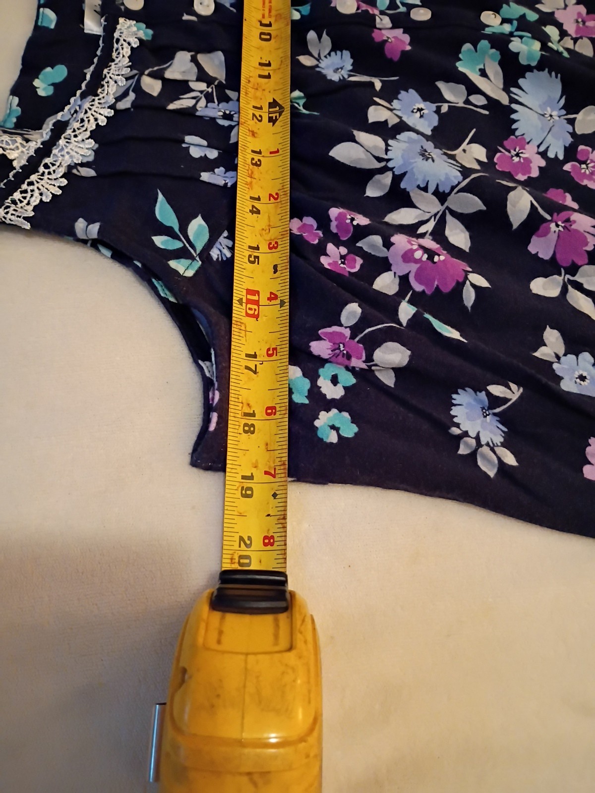 Aria Collection Floral M Nightgown Feminine Navy Blue Floral Lace Trim Buttons