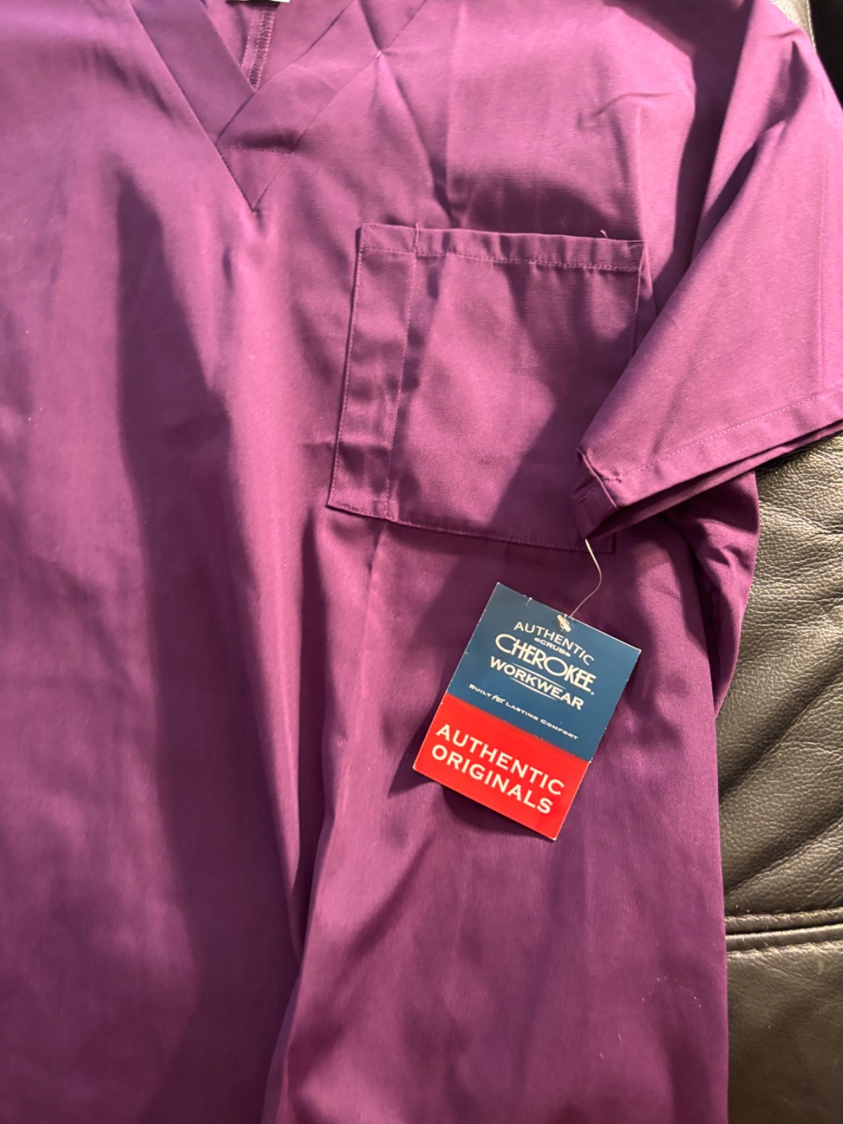 Cherokee brand scrubs dark purple M top new w tags Mint studio wardrobe auction
