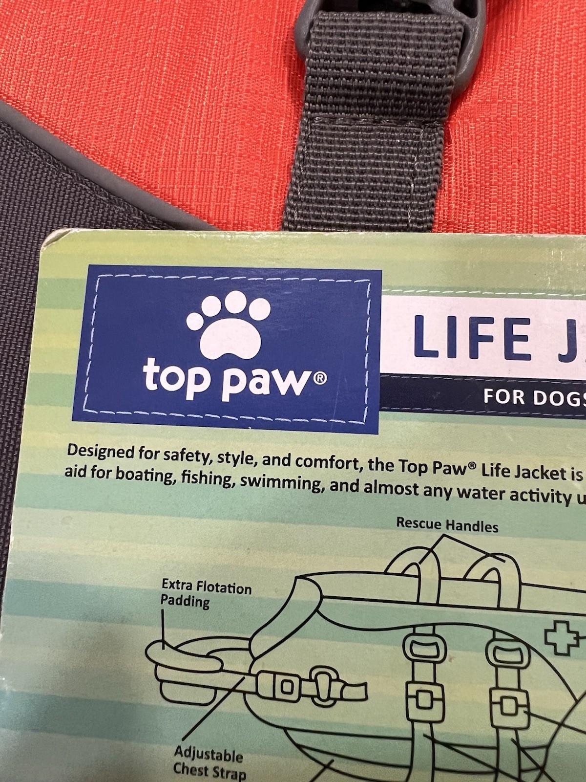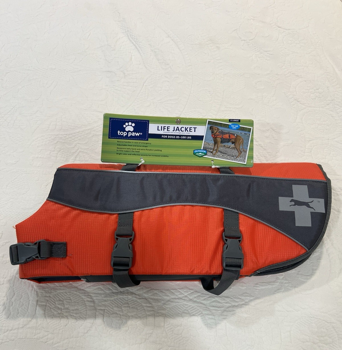 Top Paw Dog Safety Life Jacket Orange Neoprene Reflective XL 85 100 lbs. NEW.