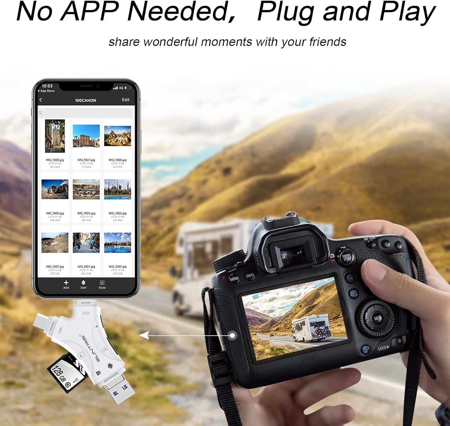 SD Card Reader for iPhone/ipad/Android/Mac/Computer/Camera,4 in1 Micro white