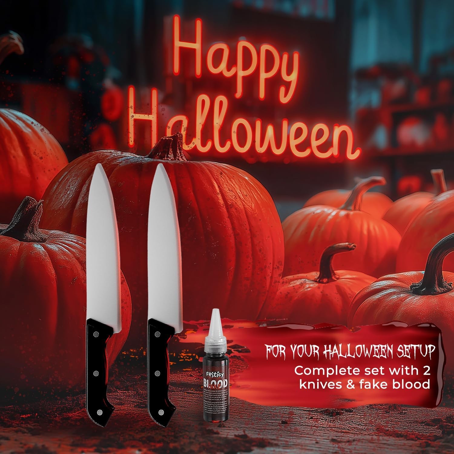 Realistic Fake Knife Set Includes 2 Knives 0.85 oz Fake Blood Ideal fo