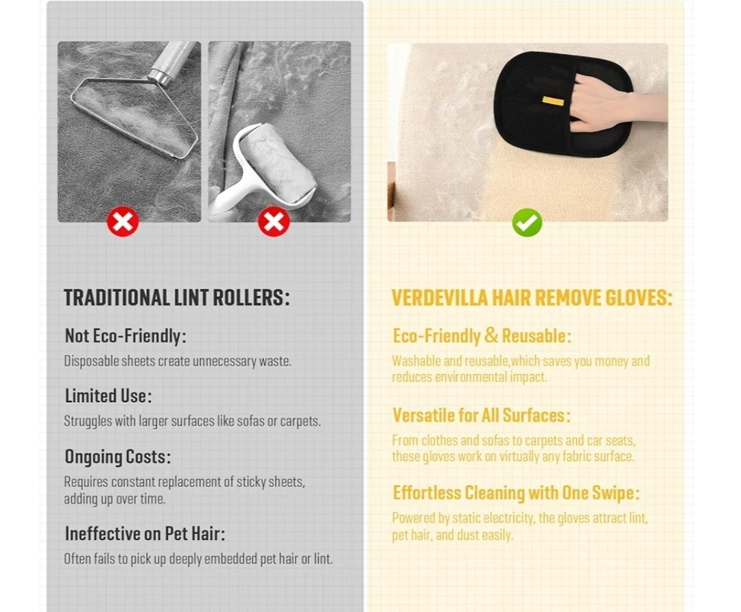 Pet Hair Removal Gloves Brush, Reusable Cat Dog Electrostatic Hair Remover