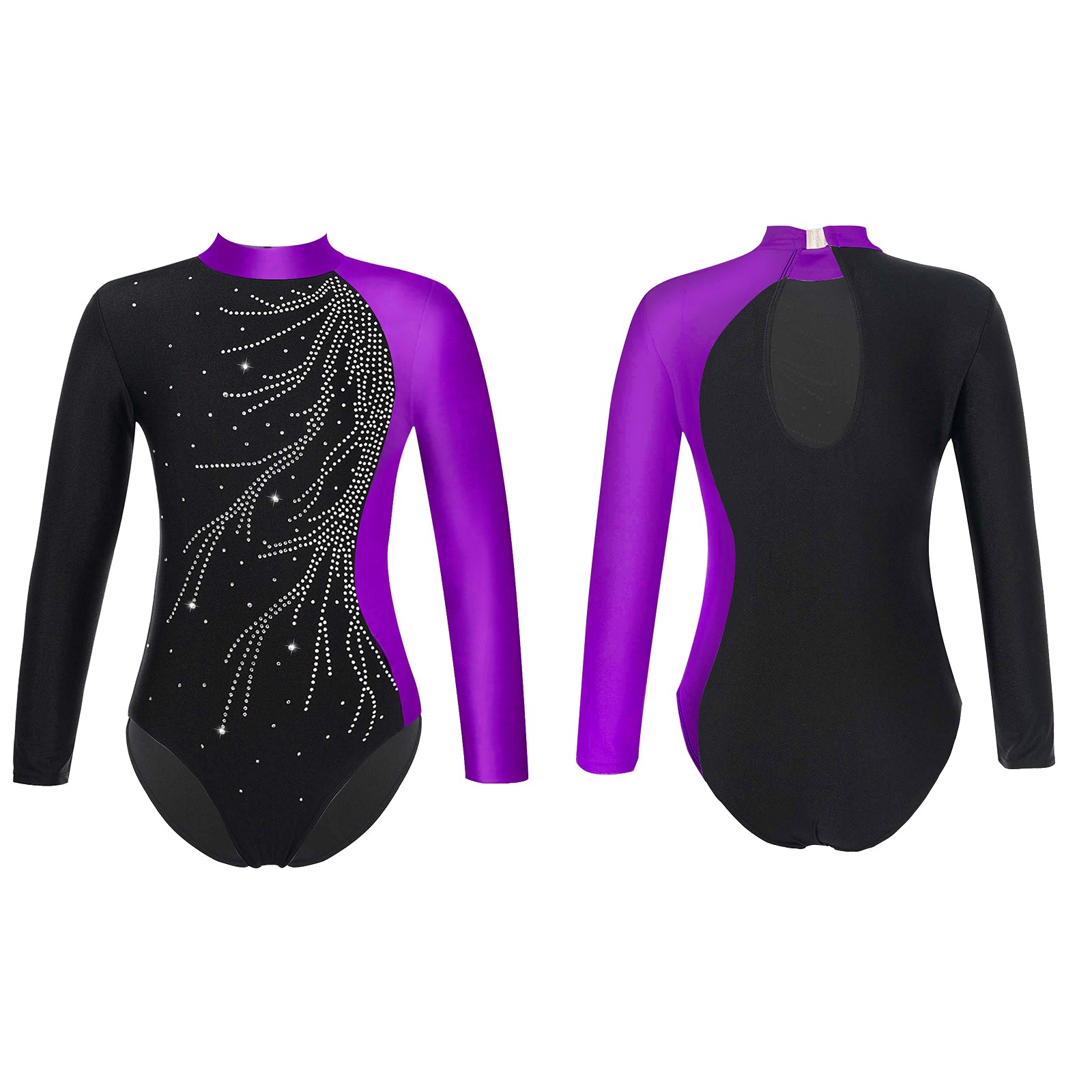 US Kids Girls Unitard Stage Show Dancewear Ballerina Jumpsuit Keyhole Back Shiny