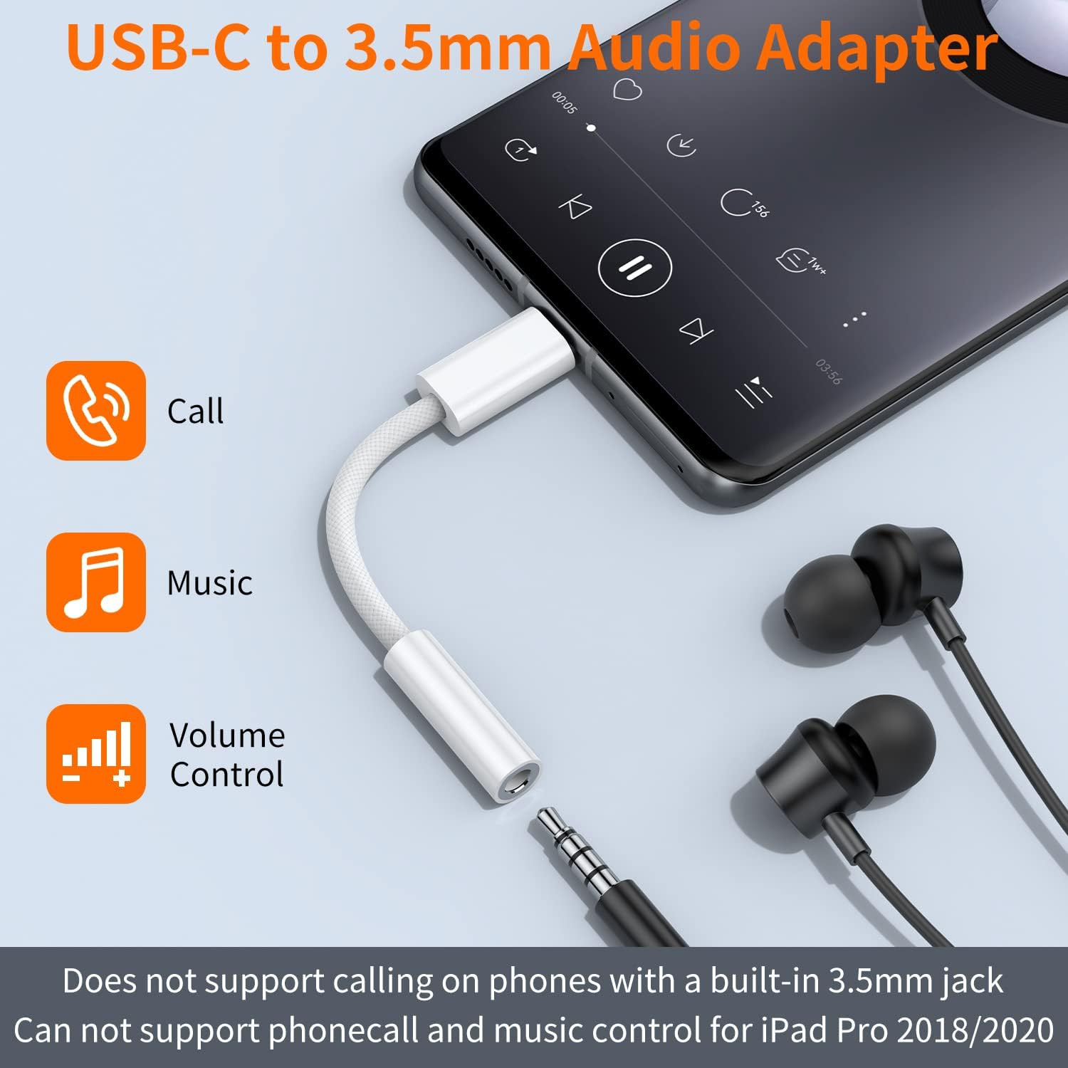 USB Type C to 3.5Mm Female Headphone Jack Adapter 2-Pack , USB C to Aux Audio D