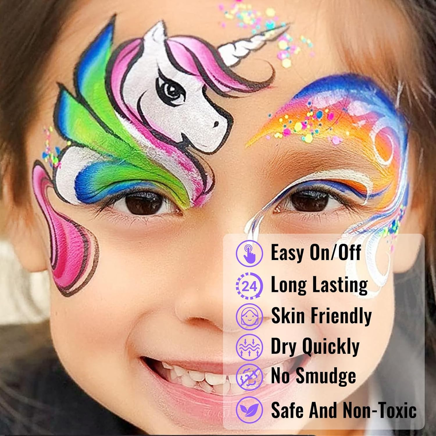 39 Colors Face Paint Kit for Kids: Professional Face Painting Kit with 6 Stencil
