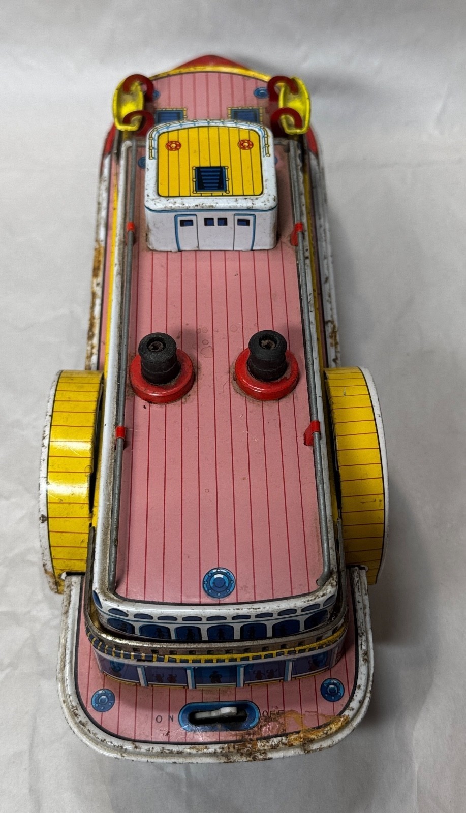 как выглядит Vintage Modern Toys Japan SHOW BOAT Battery-Op Tin Riverboat  Not Working фото