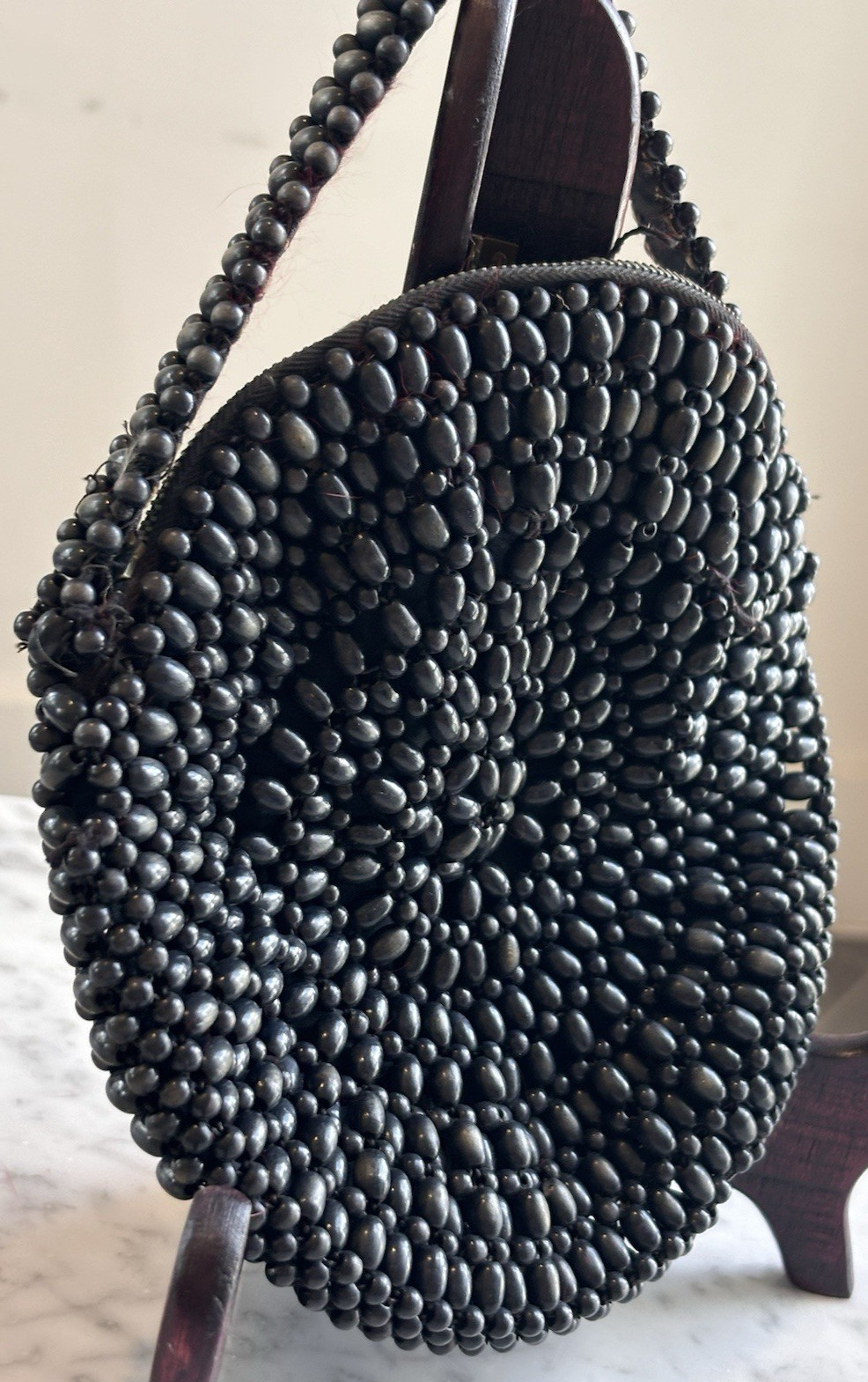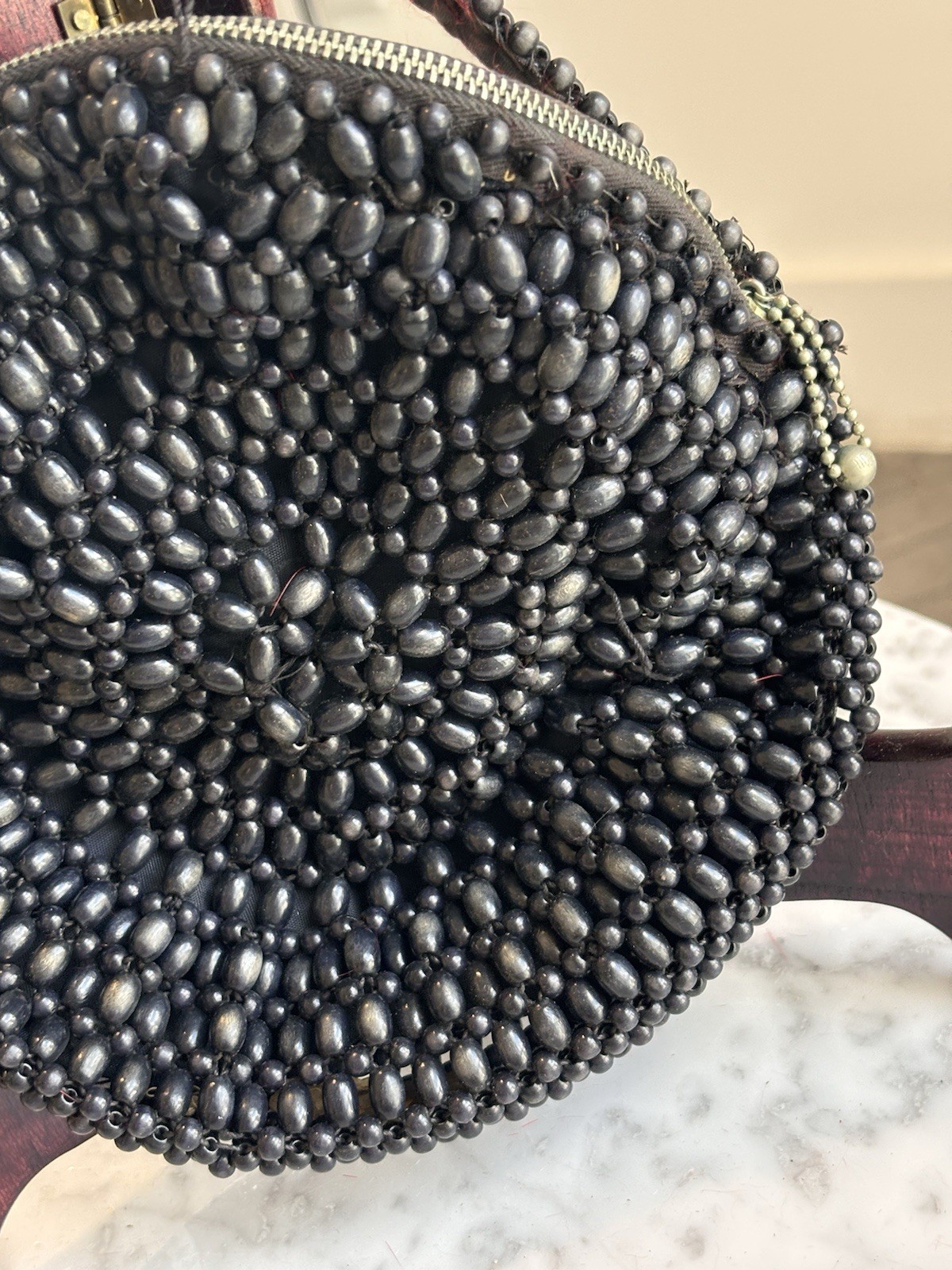 как выглядит Vintage Pimkie 8" Circular Beaded Handle Zipper Bag, Rare Fashion Gifts for Her фото