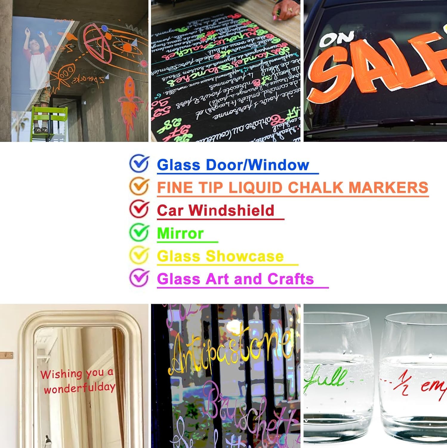 • Chalk Markers - Fine Tip Wet Erase Markers, 8 1 Count Pack of 8 , Multicolor