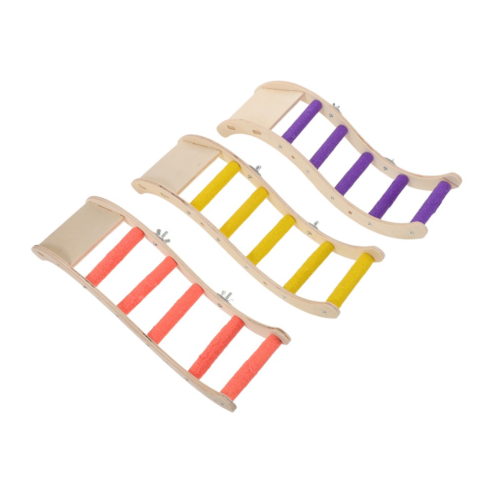 3pcs Parrot Toy Swing Ladder - Colorful Wooden Bird Ladder Toy Staircase -