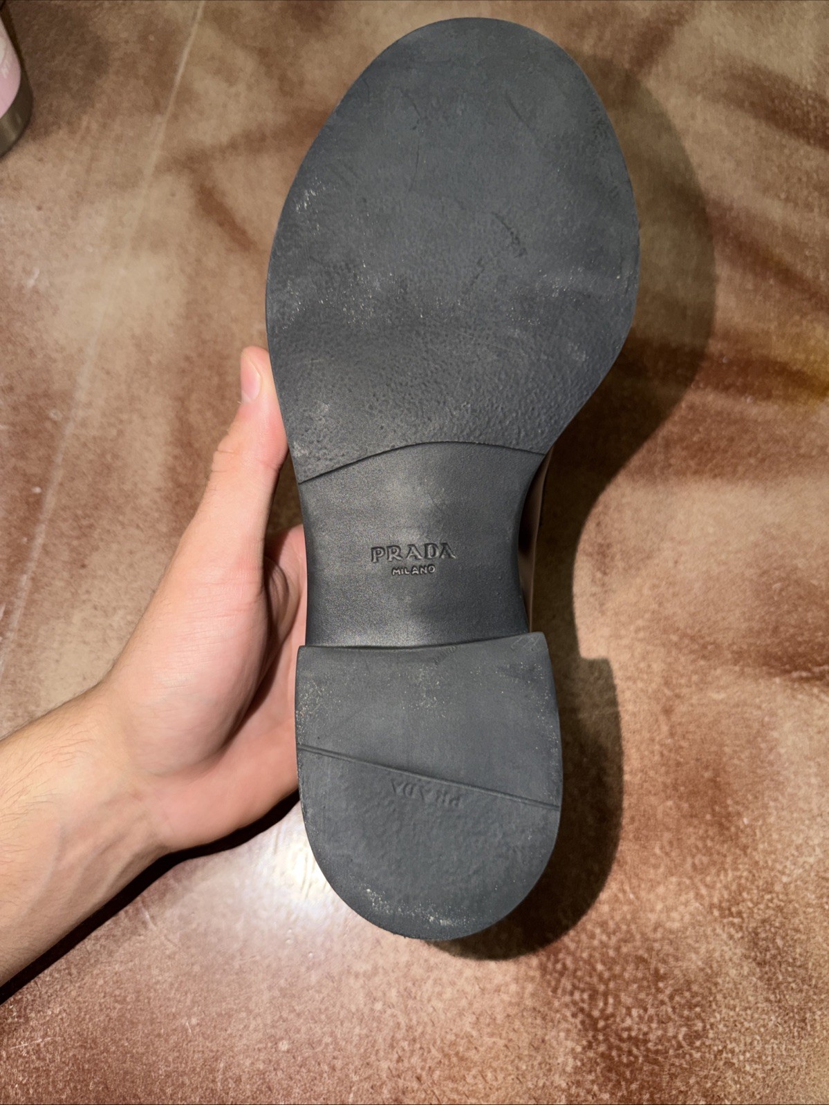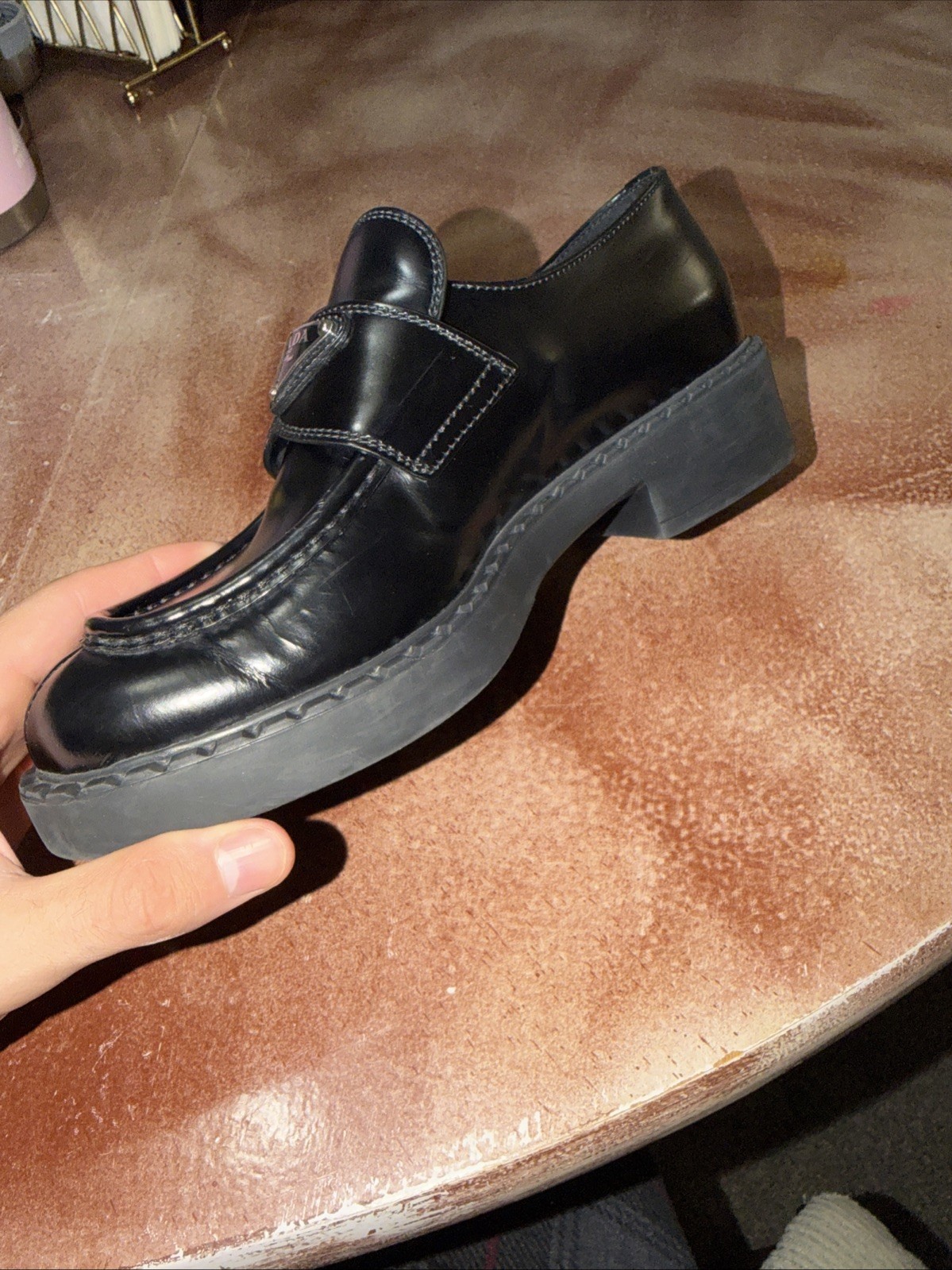 как выглядит PRADA Triangle Logo Loafers Size 38 Womens Black Leather фото