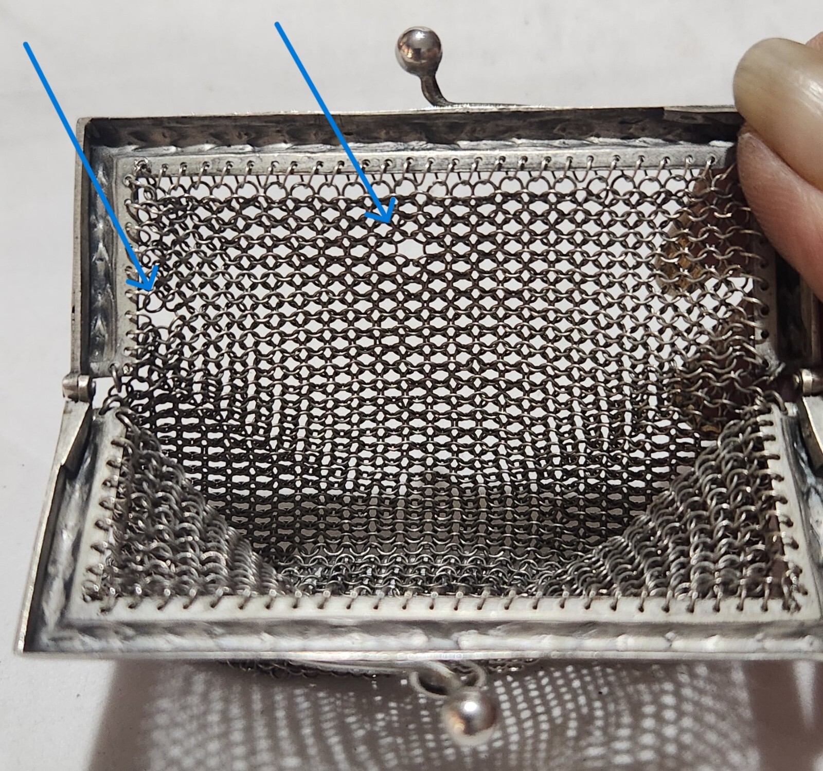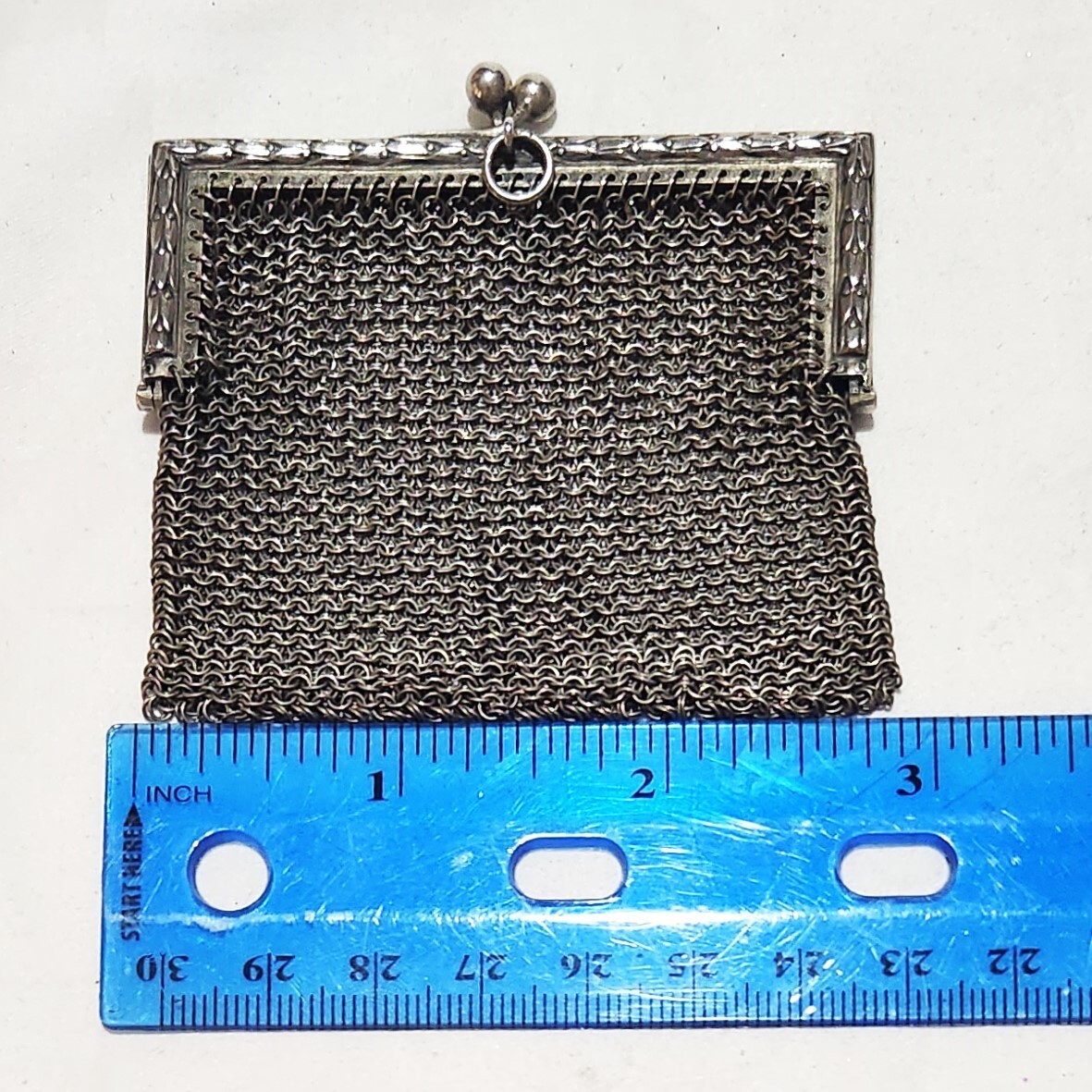 как выглядит Antique Sterling Silver Mesh Evening Coin Purse w/Olive Branch Relief Frame 37g фото