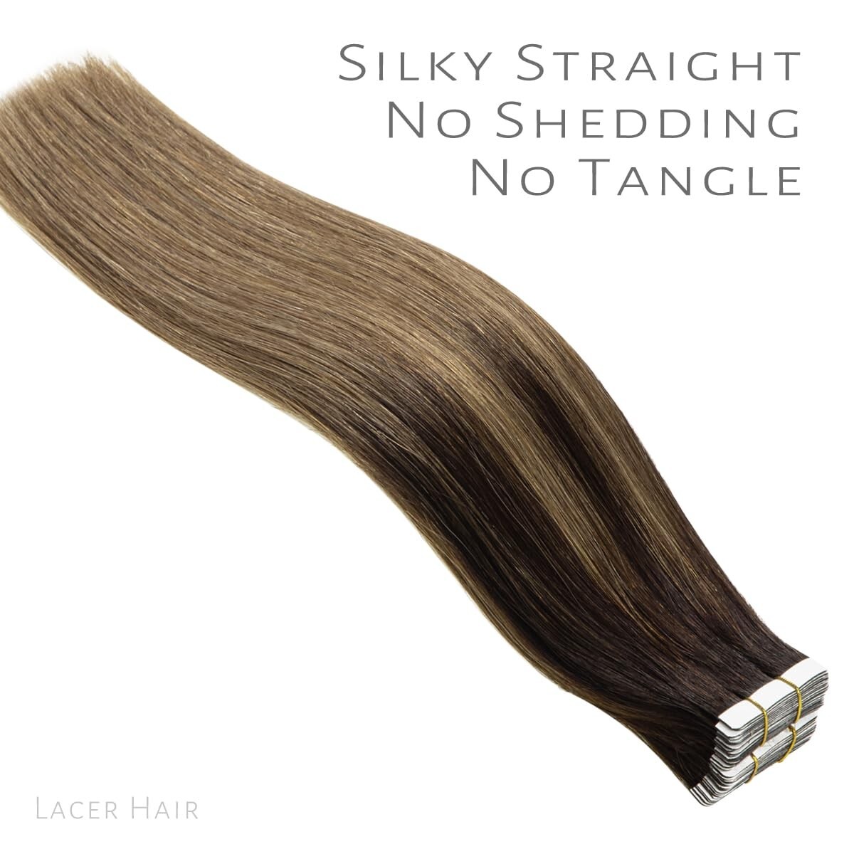 Remy Tape in Human Hair Extensions Balayage Seamless PU Skin Weft 1BT1B/27 22in