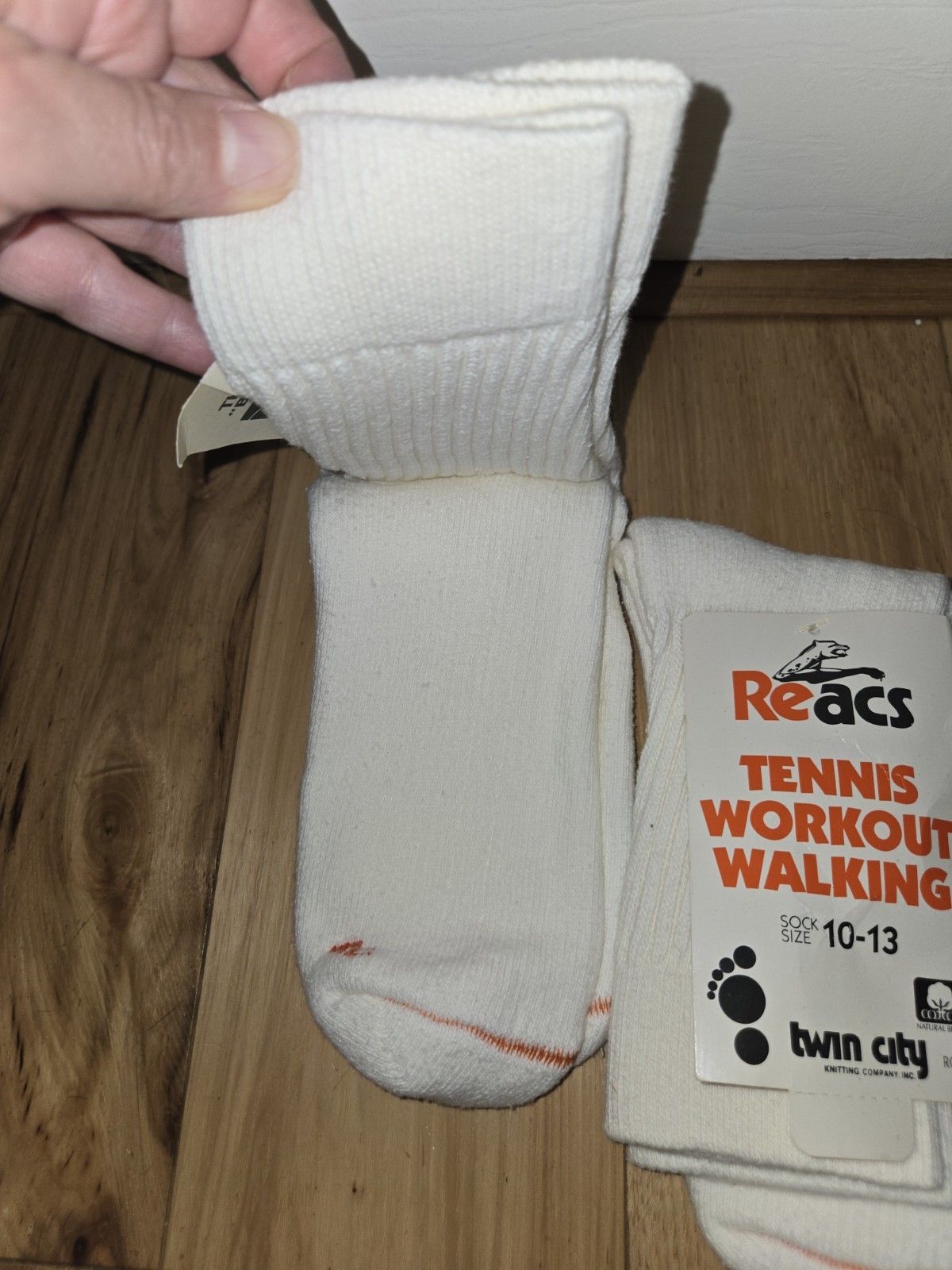 Vtg. LOT 2 Mens White Tube Socks Sz 10-12 NOS Twin City REACS USA Tennis Workout