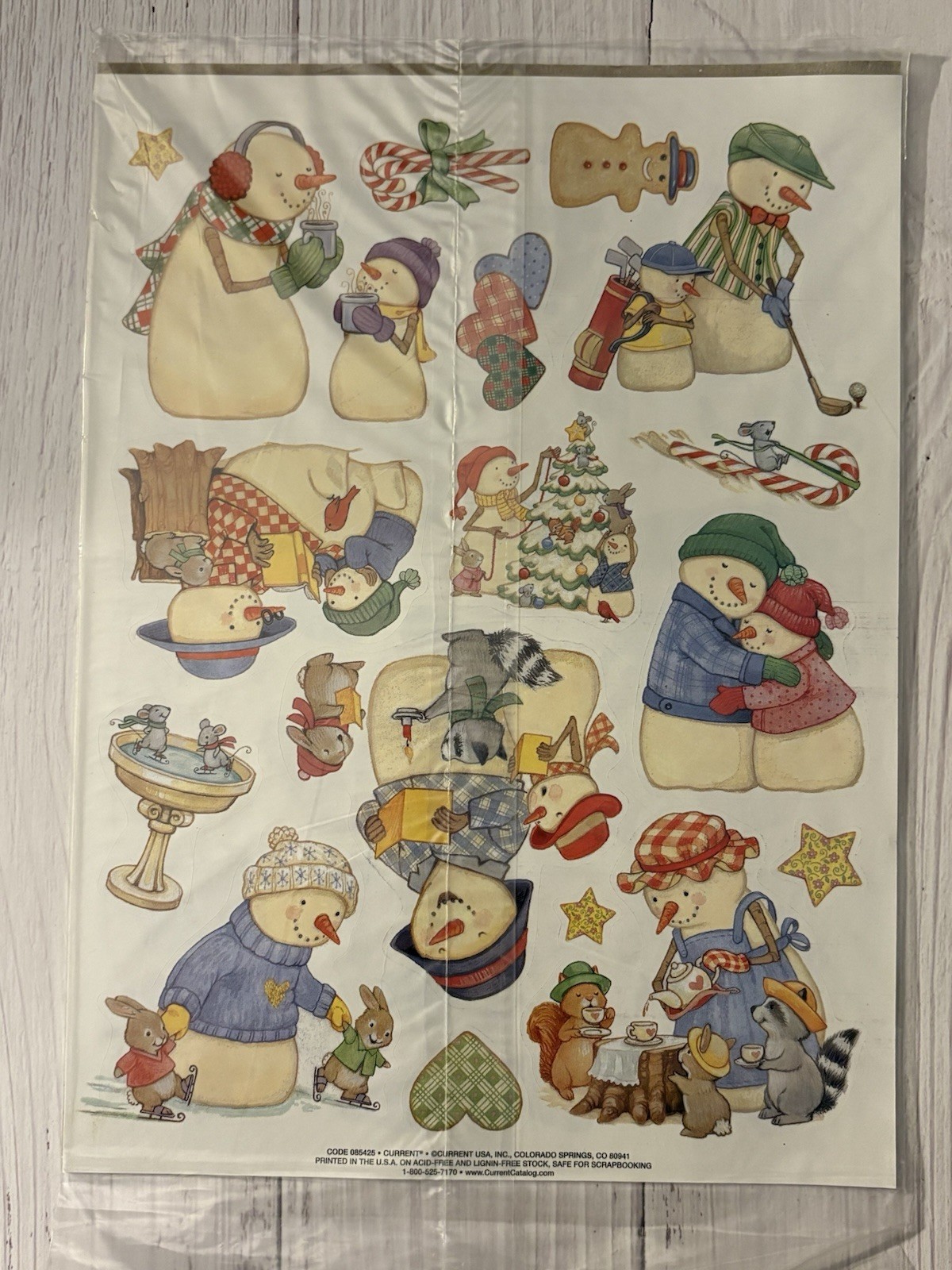 VINTAGE CHRISTMAS STICKERS Snowmen Snow people - 2 Sheets CURRENT Large Sheet