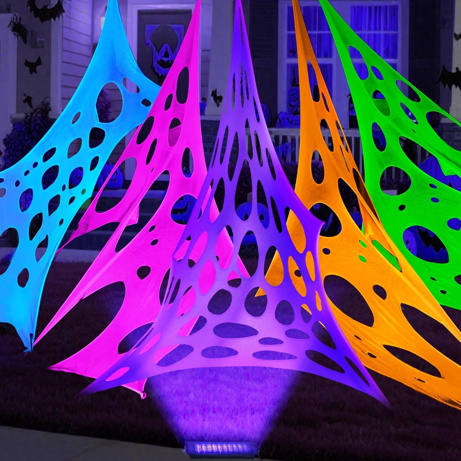 Glow in the dark 1300 Sqft 5 colors Uncut Giant Spider Web Halloween Decorations