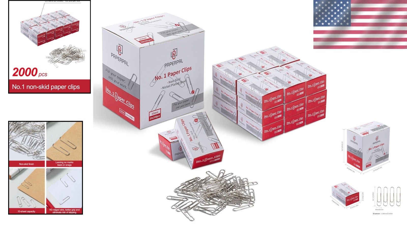 Bulk Silver Non-Skid Paper Clips - 2000 Pack for Office School Daily Use