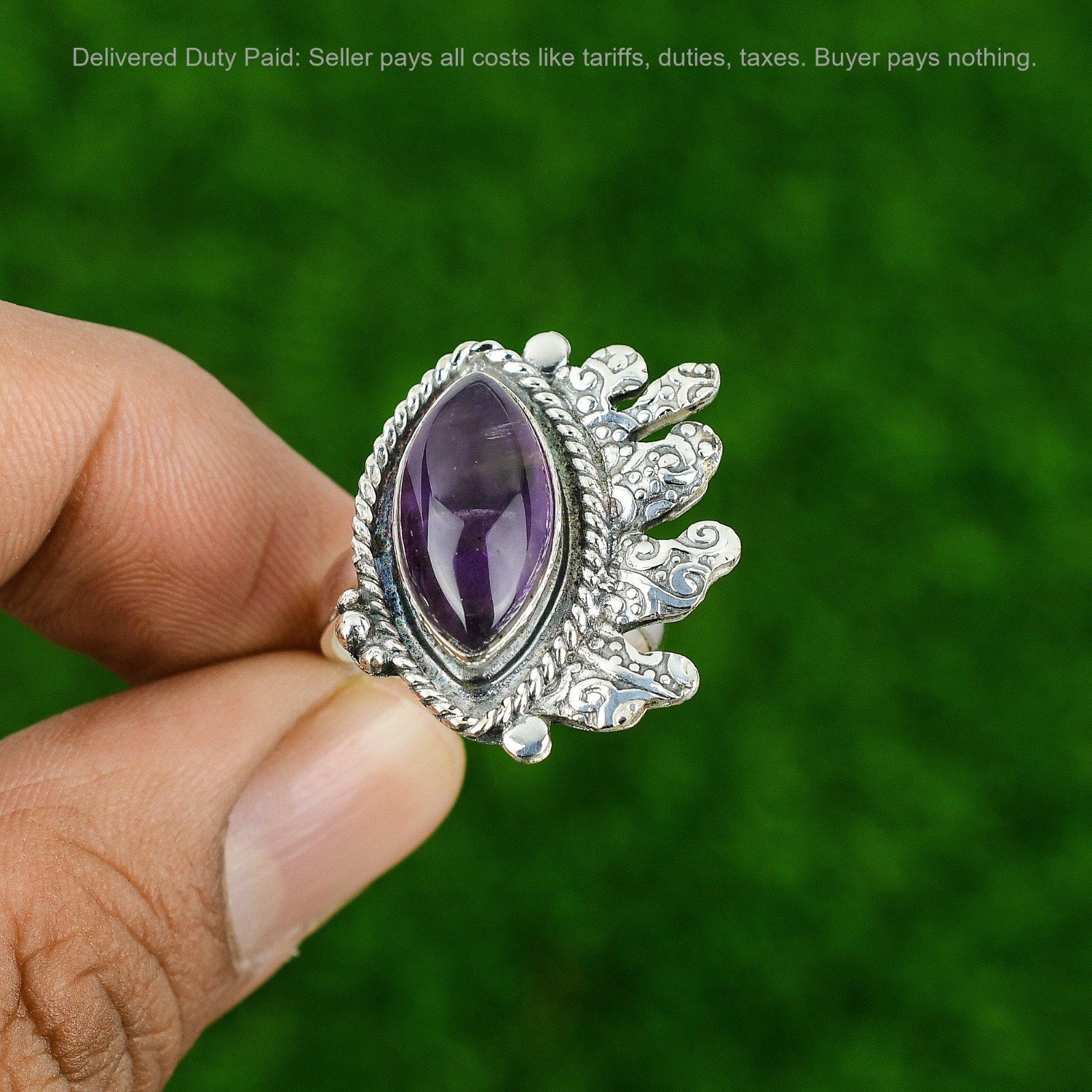 Halloween Sale African Amethyst Gemstone 925 Silver Engagement New Ring Jewelry