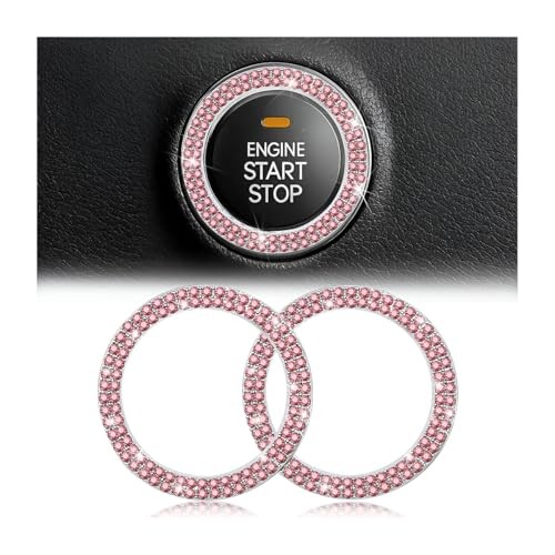 Car Bling Crystal Rhinestone Engine Start Ring Decals, 2 Pack Car Double Pink