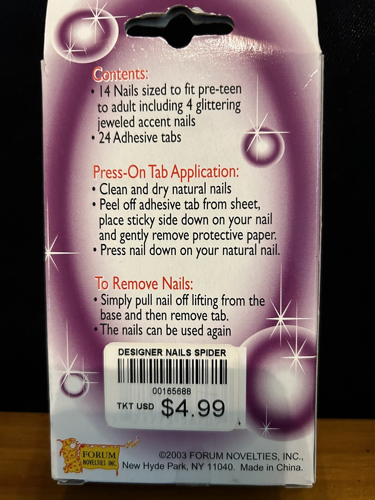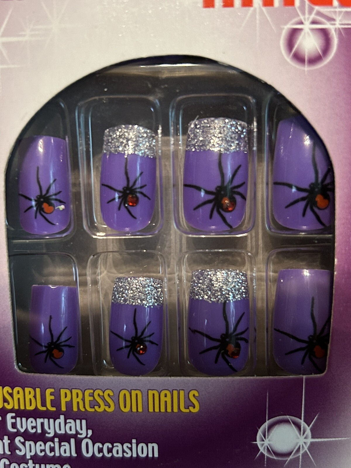 Press-on Spider Nails Jewel Glitter Purple Costume Reusable Forum Novelties