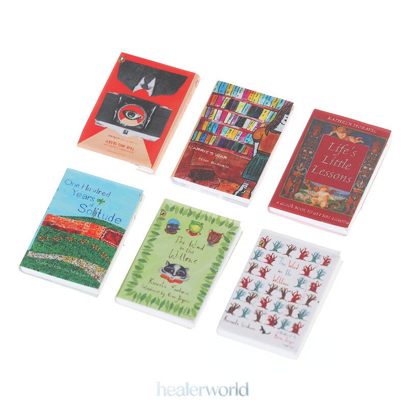 6PC Dollhouse Miniature 1:12 Scale Books Bookcase Unturnable Pages Bookcase