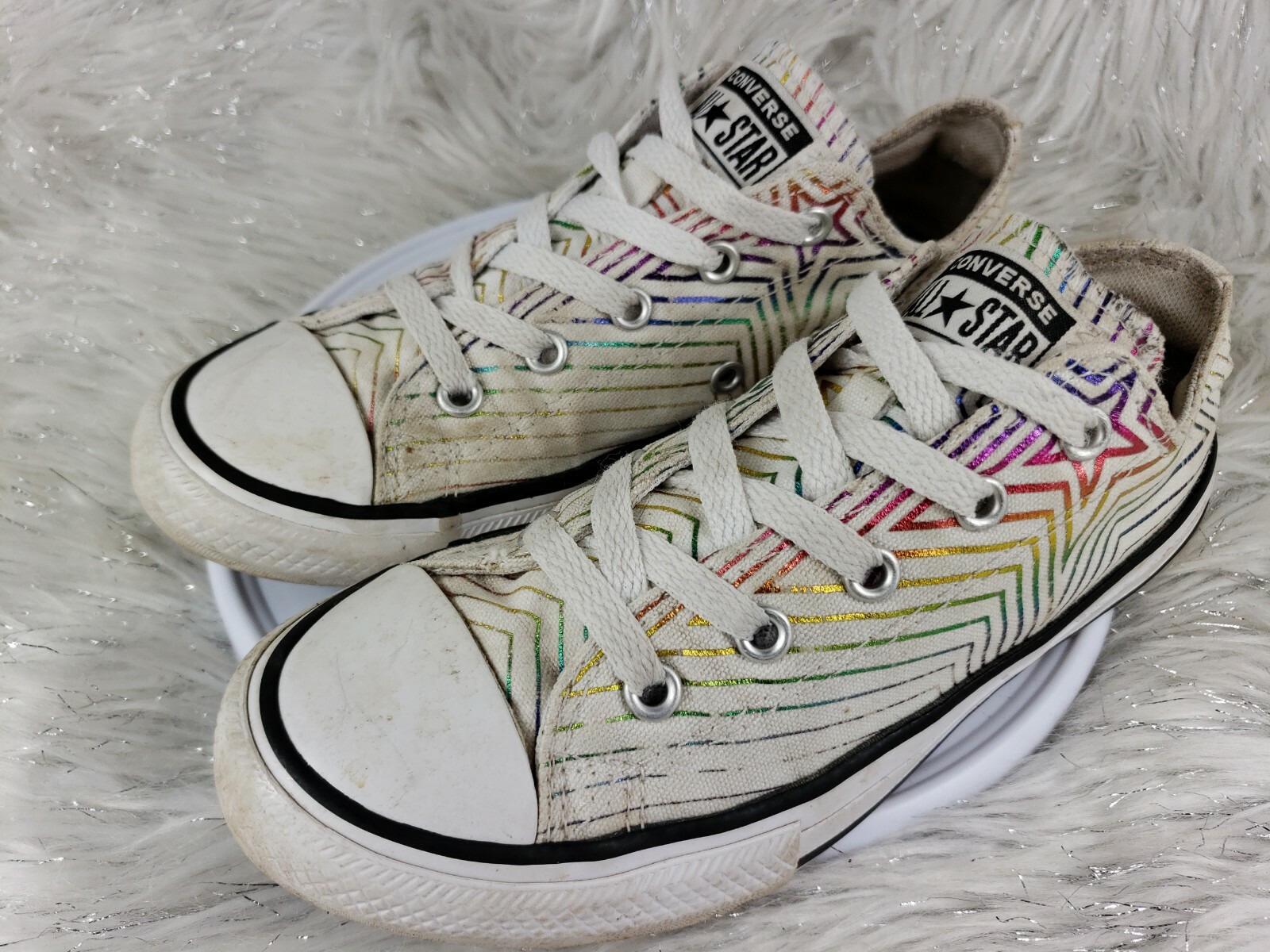 CONVERSE ALL-STAR Juniors Girls Stripes Stars Colorful Skate Sneakers Shoes Sz 2