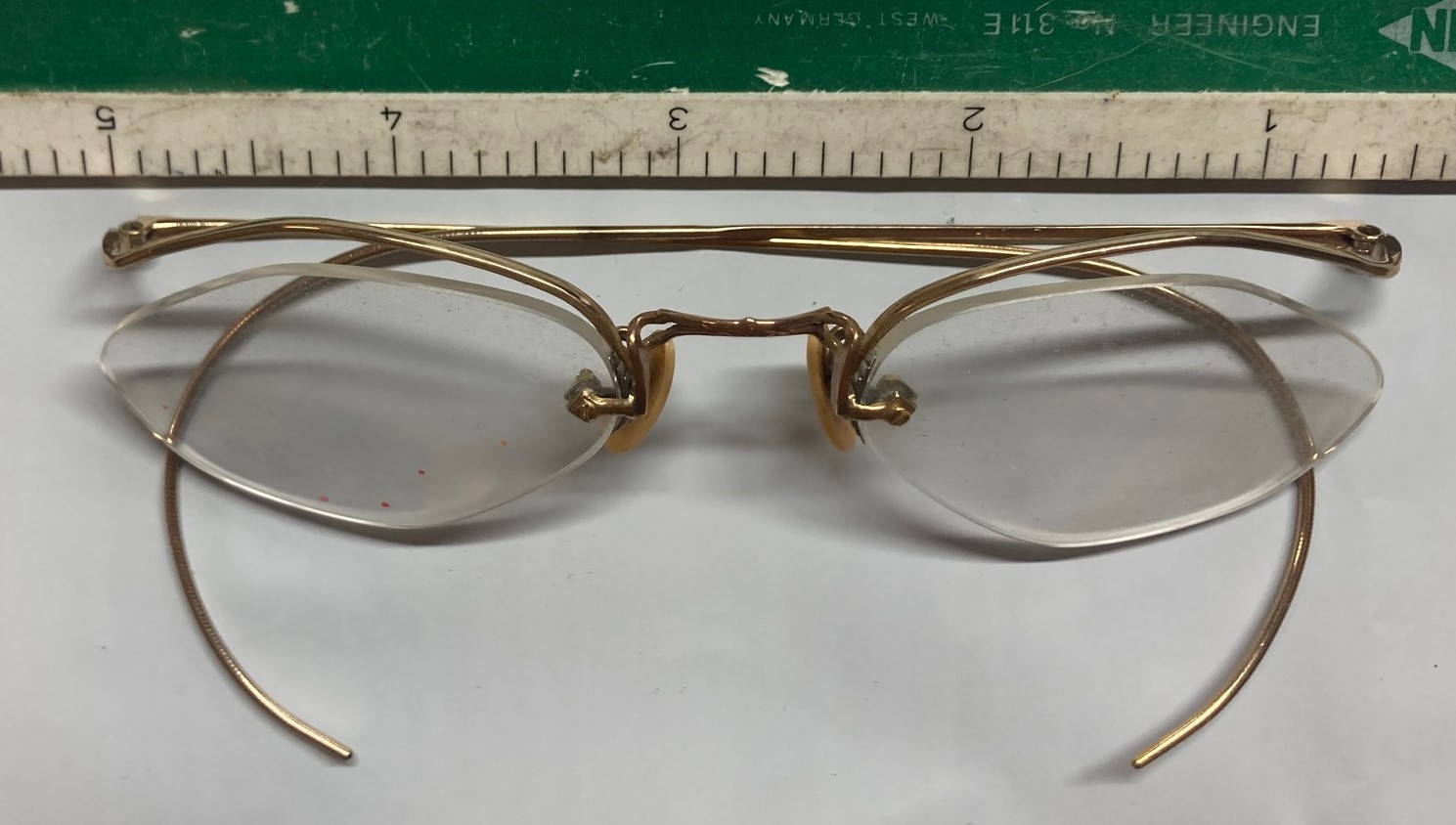 как выглядит VERY OLD ANTIQUE EYEGLASSES GOLD METAL FRAME TEMPLES RIMLESS UNUSUAL LENS SHAPE фото