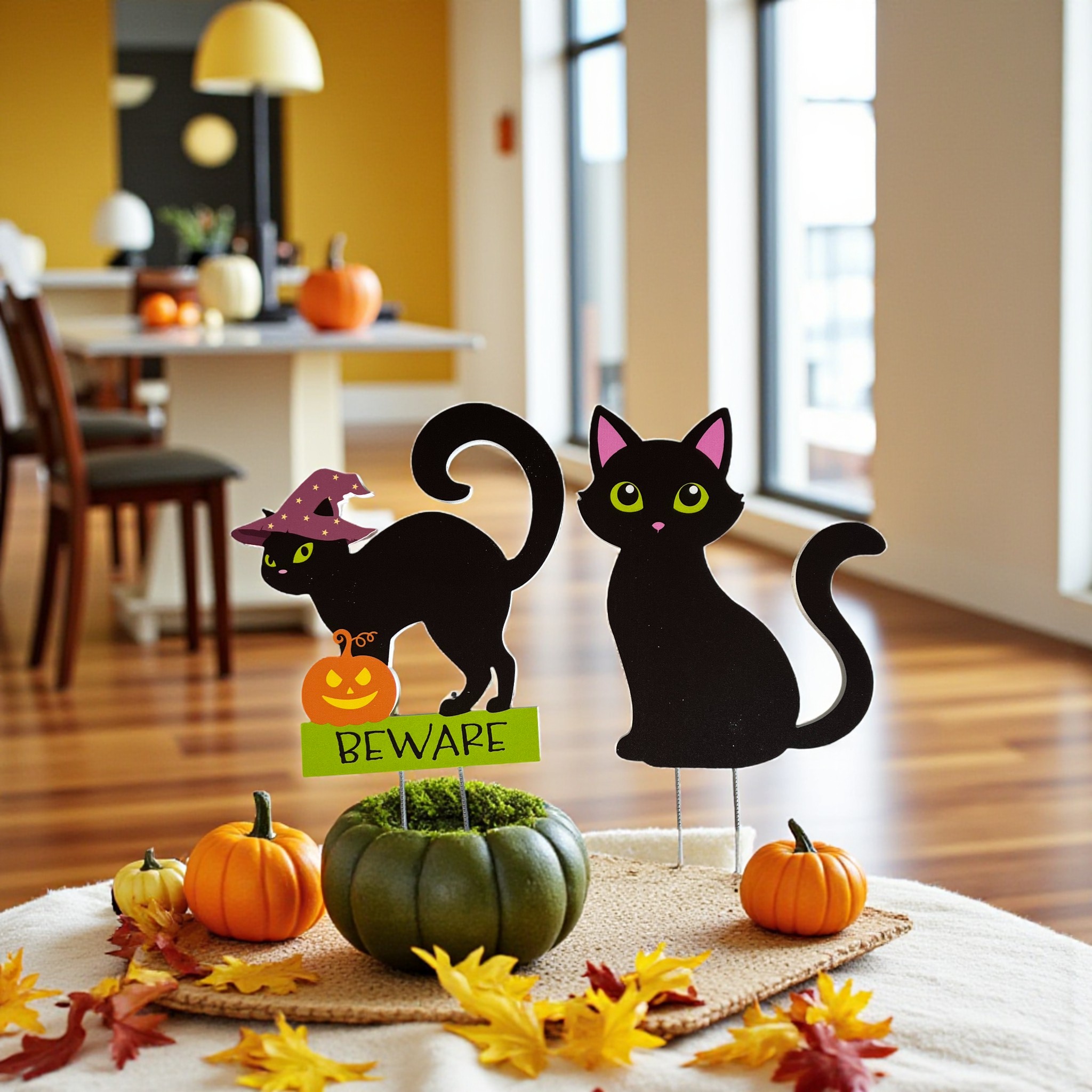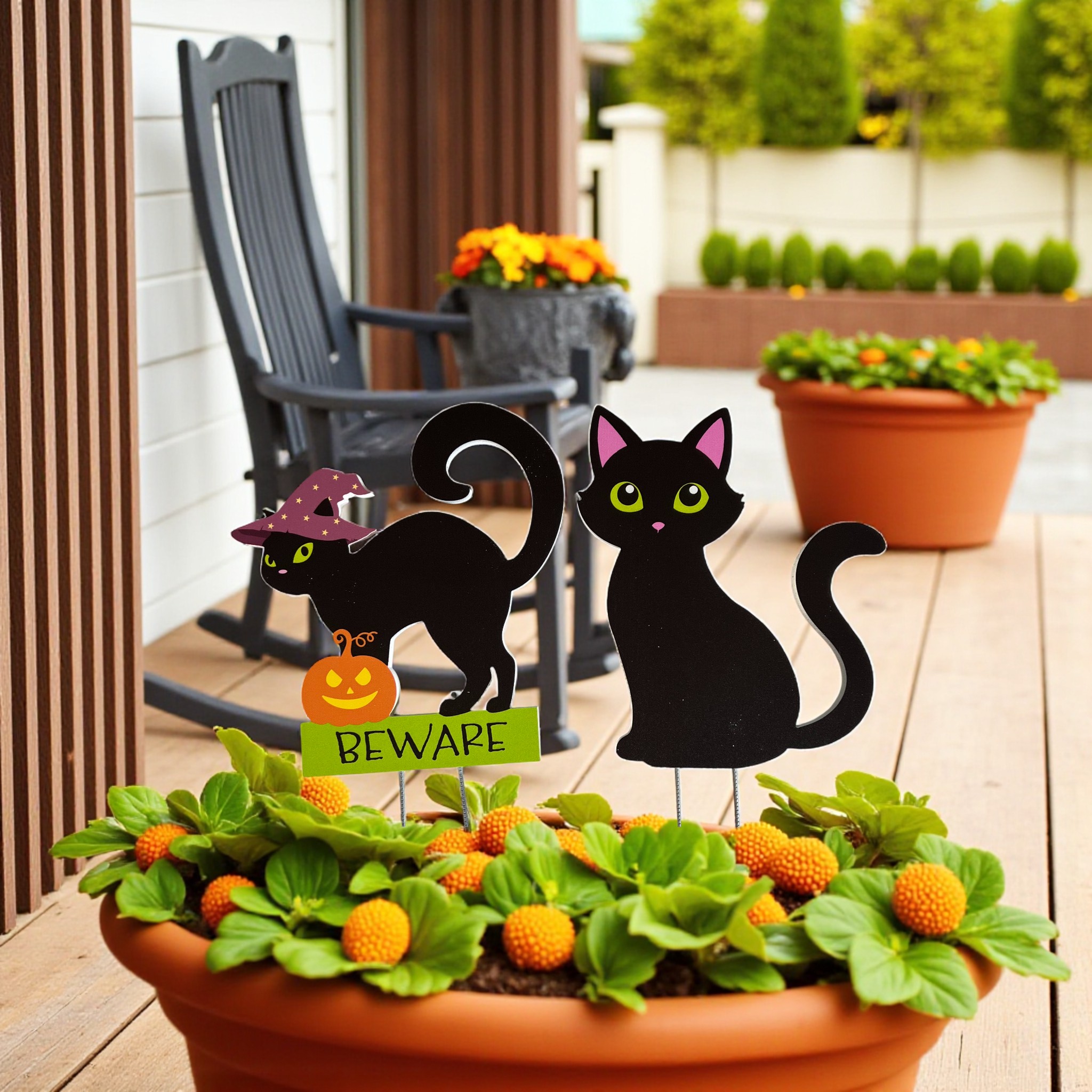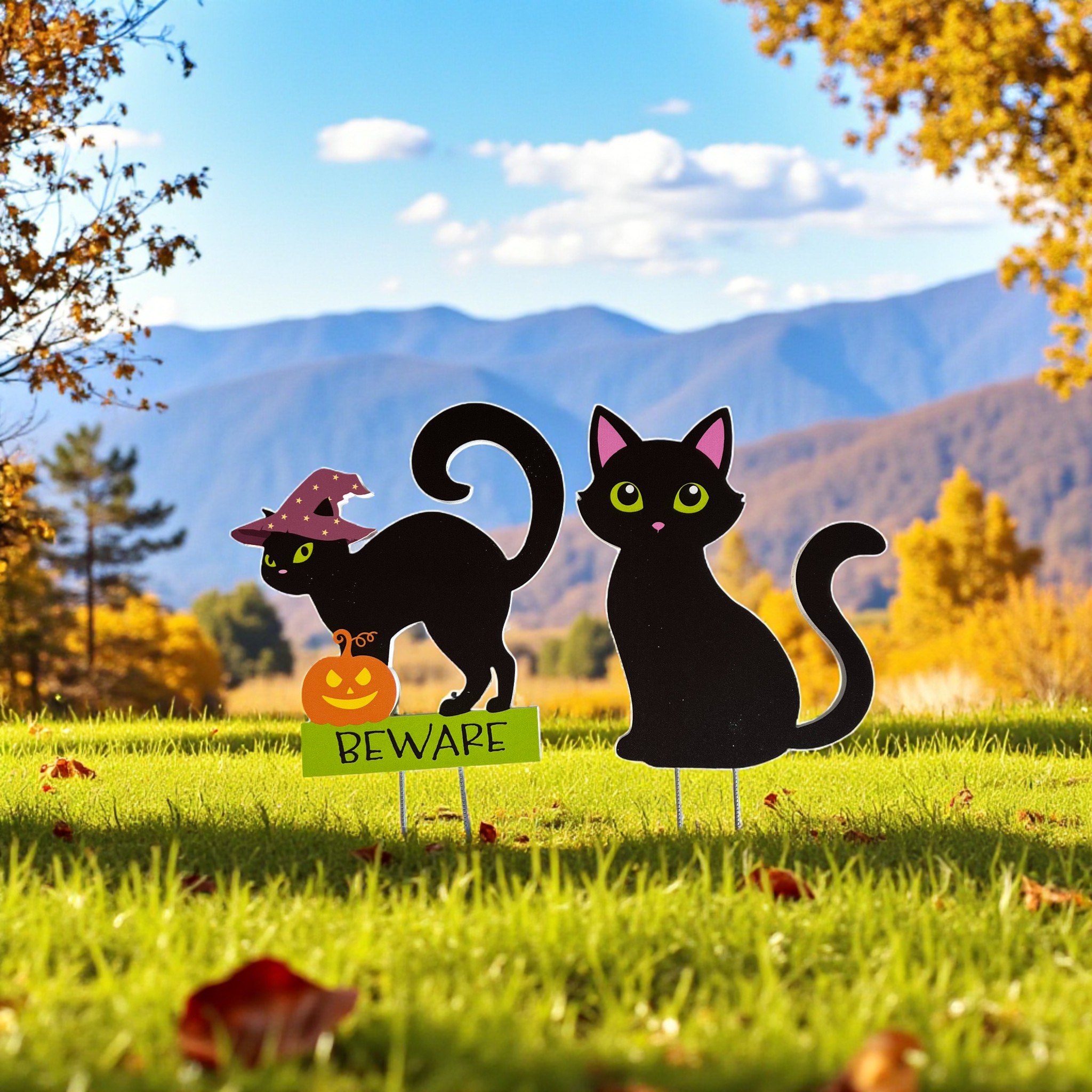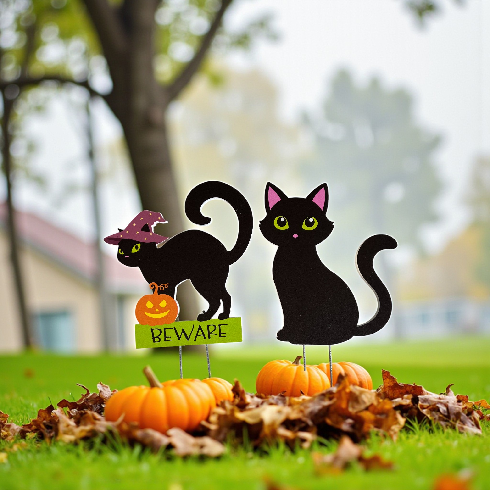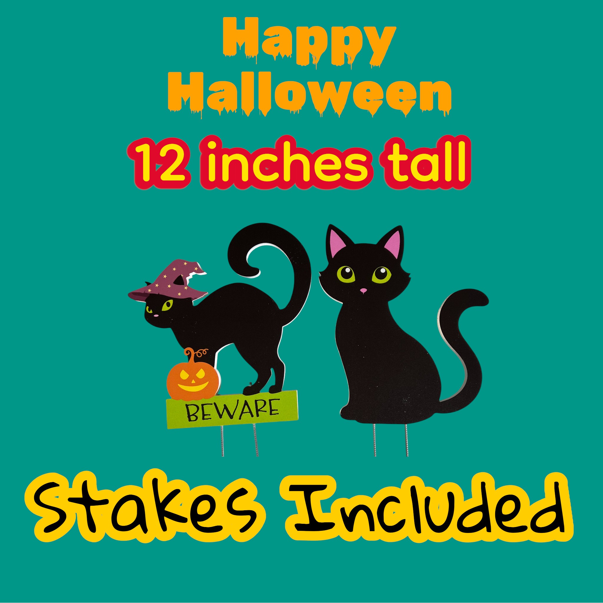 Black Cats Halloween Yard Stakes, Outdoor PVC Fall Decor, Set of 2 With Stakes