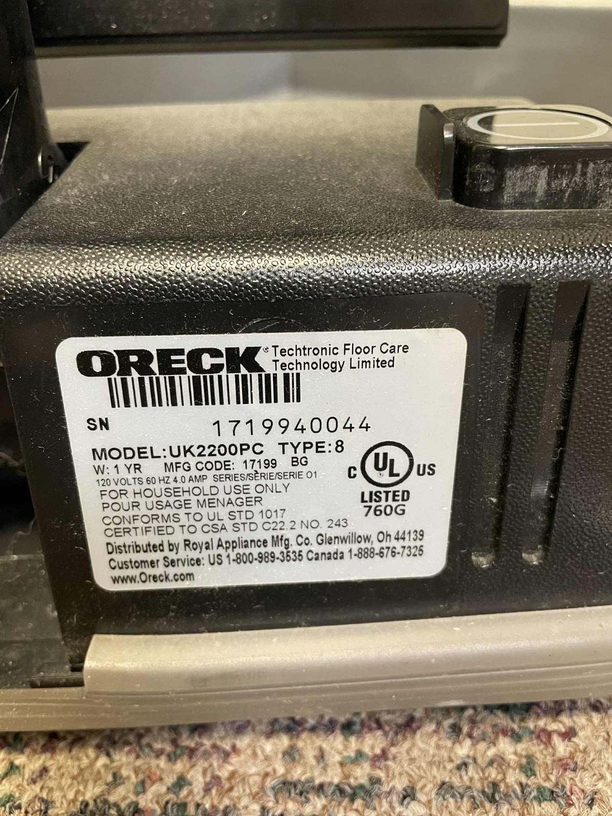 Модель: oreck xl