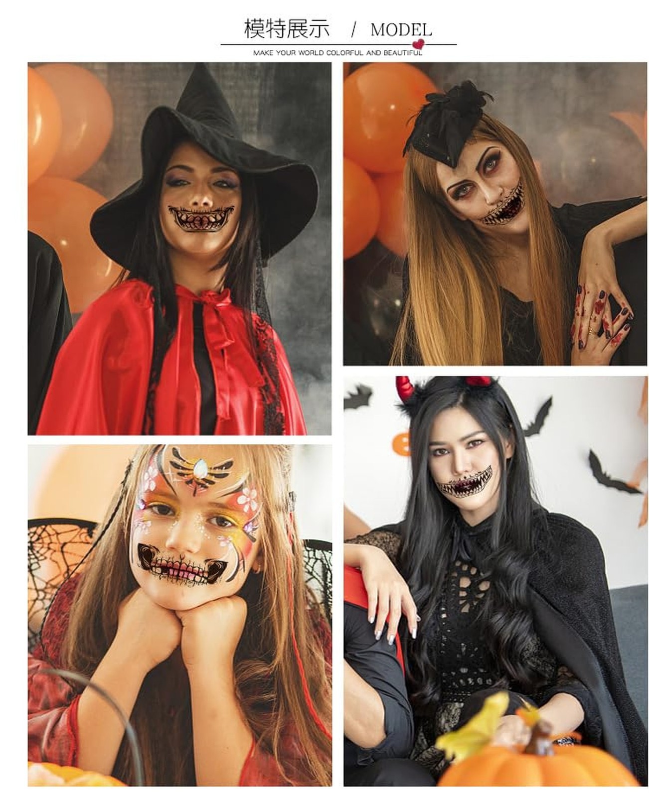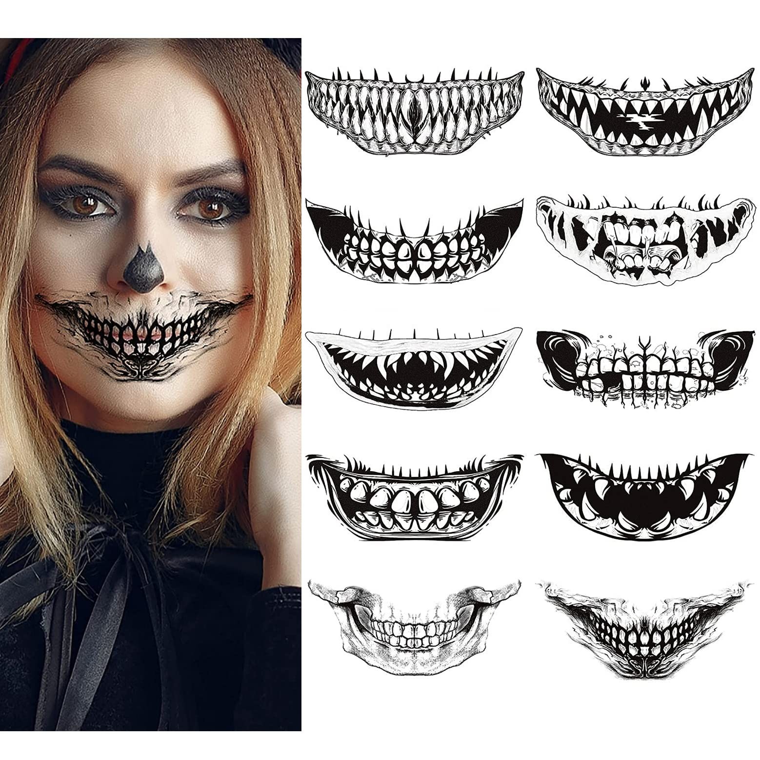 Skull Mouth Tattoos, Day of the Dead Sugar Face Tattoo for Women Men Kids Hal...