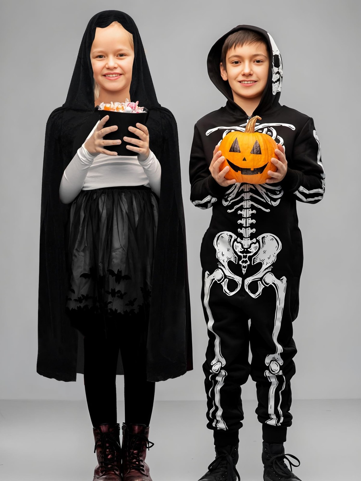 Kids Velvet Cloak Cape with Hooded Halloween Costume Cape Black Wizard Robe C...