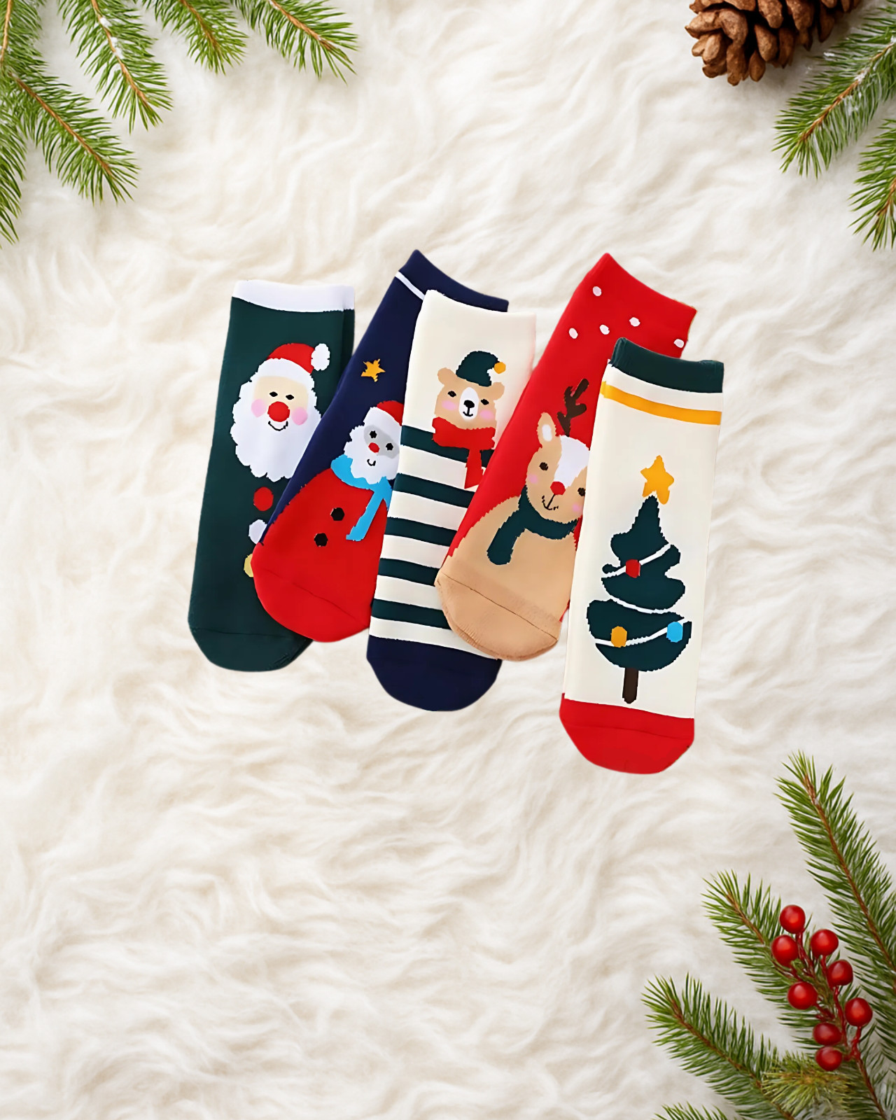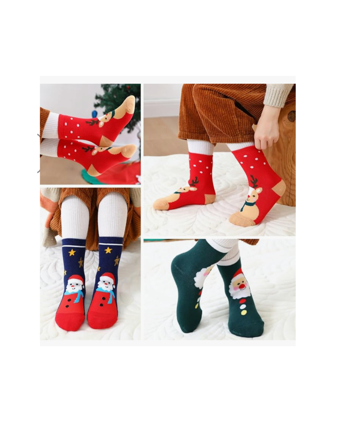 Christmas Kids Socks 5 Pairs Santa Reindeer Holiday Gift Set, Sizes S-XL