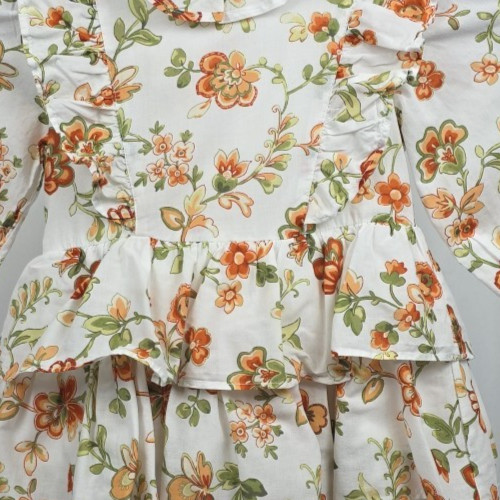 Janie and Jack White Long Sleeve Orange Floral Tiered Ruffle Dress Size 3Y