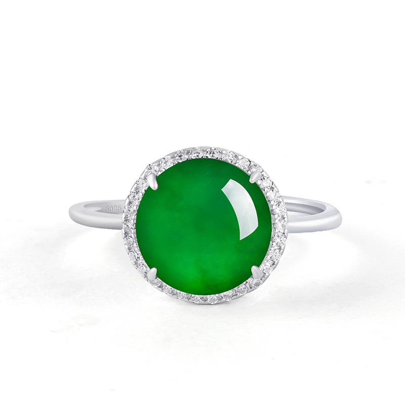 как выглядит Inlaid natural A-grade jadeite yang green egg face ring фото
