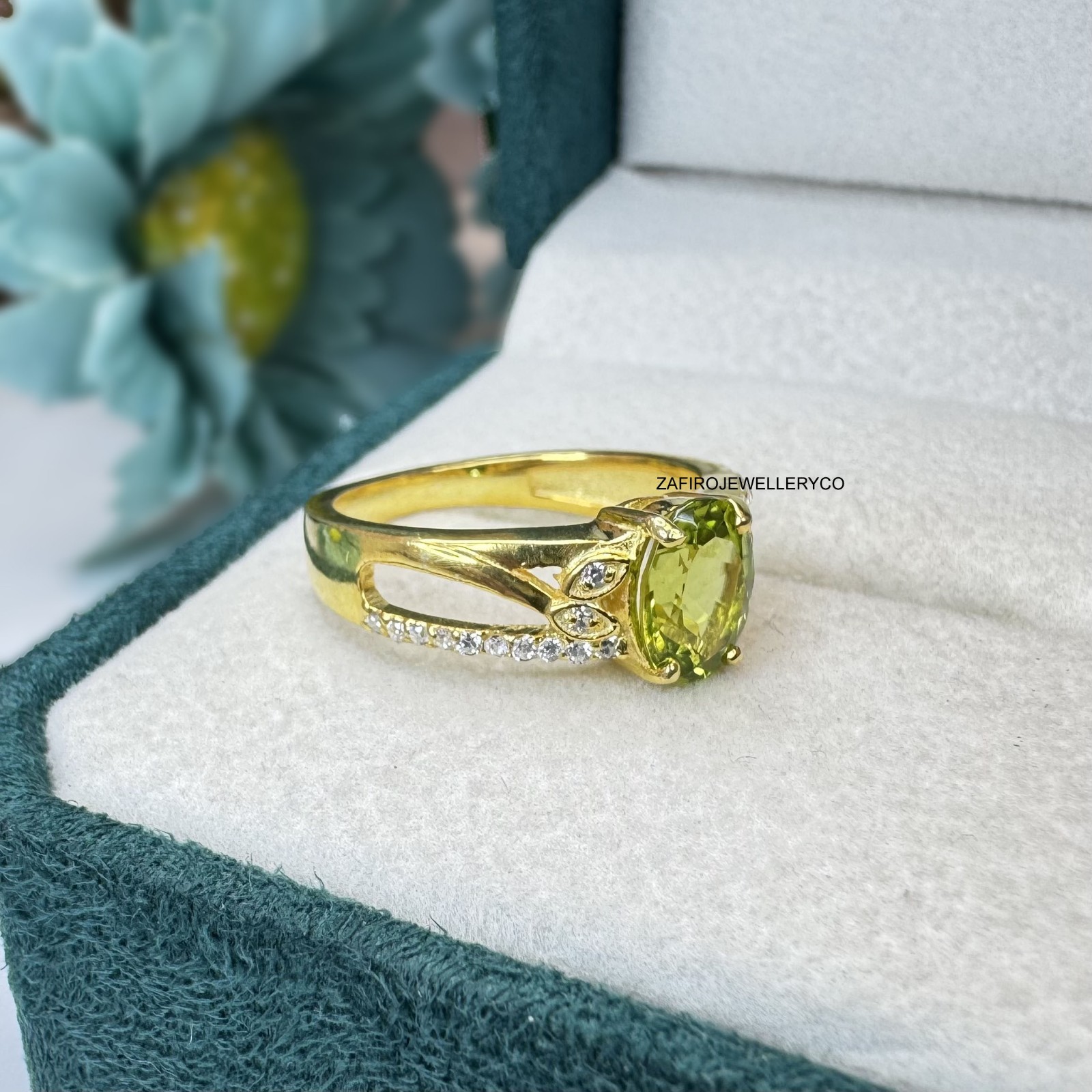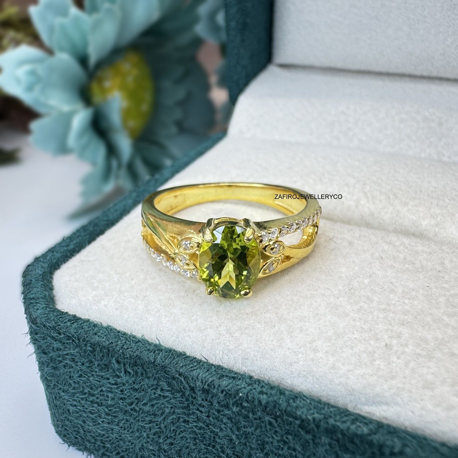 Natural Peridot Ring, Anniversary Ring, 925 Sterling Silver, August Birthstone