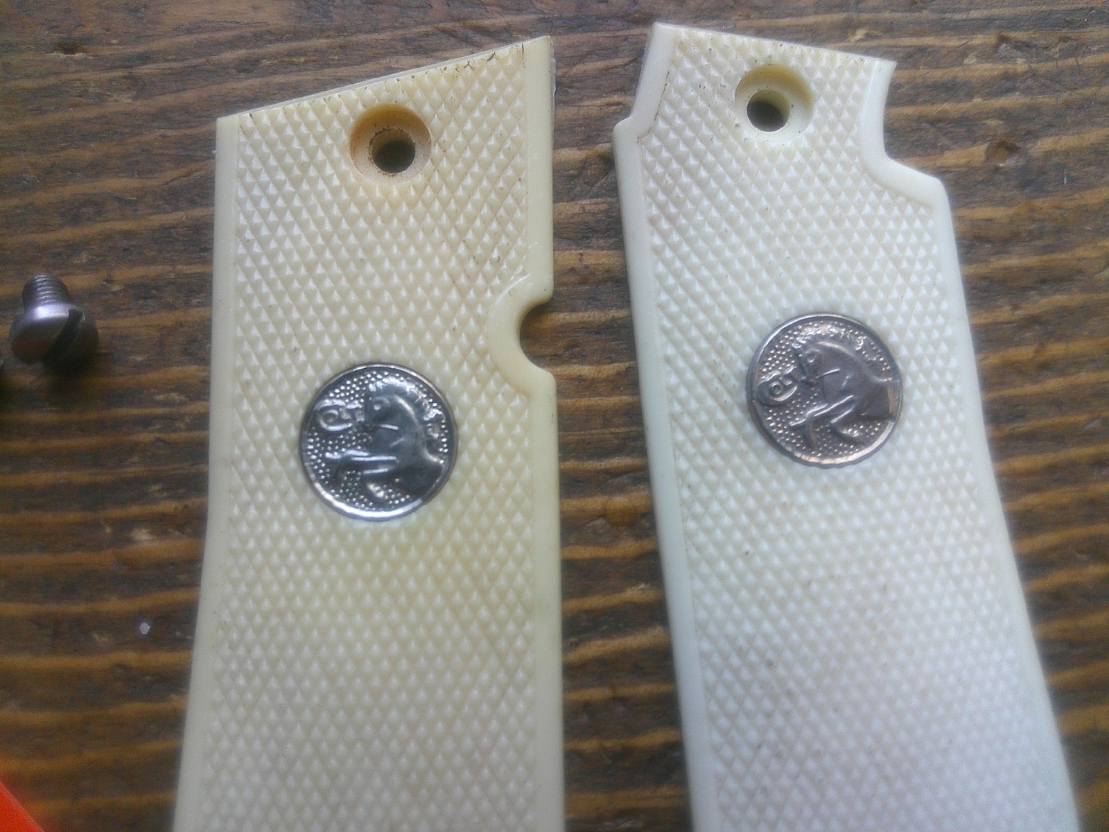 Factory Colt Mustang 380 White Polymer Grips With Silver Medallions Screws