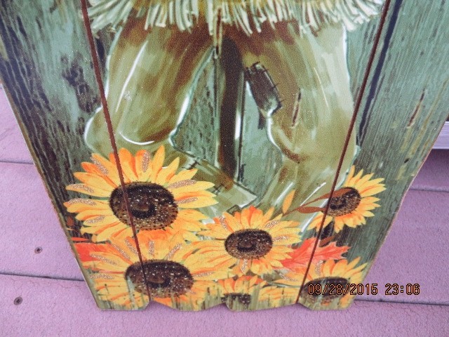 HAPPY FALL WOOD SIGN---SCARECROW AND SUNFLOWERS--24" X 9"-- R3-2