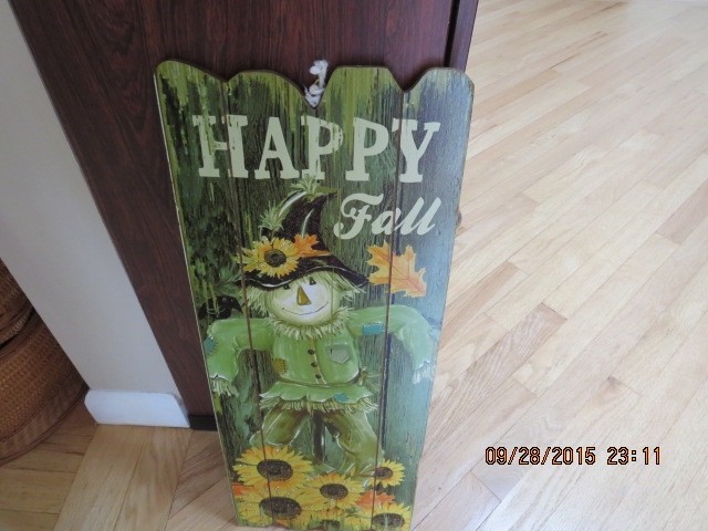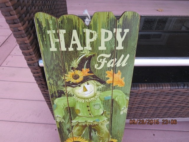HAPPY FALL WOOD SIGN---SCARECROW AND SUNFLOWERS--24 X 9-- R3-2