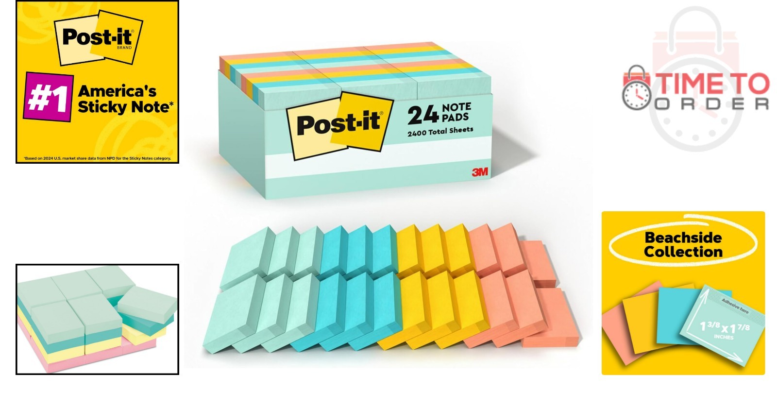 Sticky Notes Recyclable Pastel Colors 1.5x2 in 24 Pads Office Classroom
