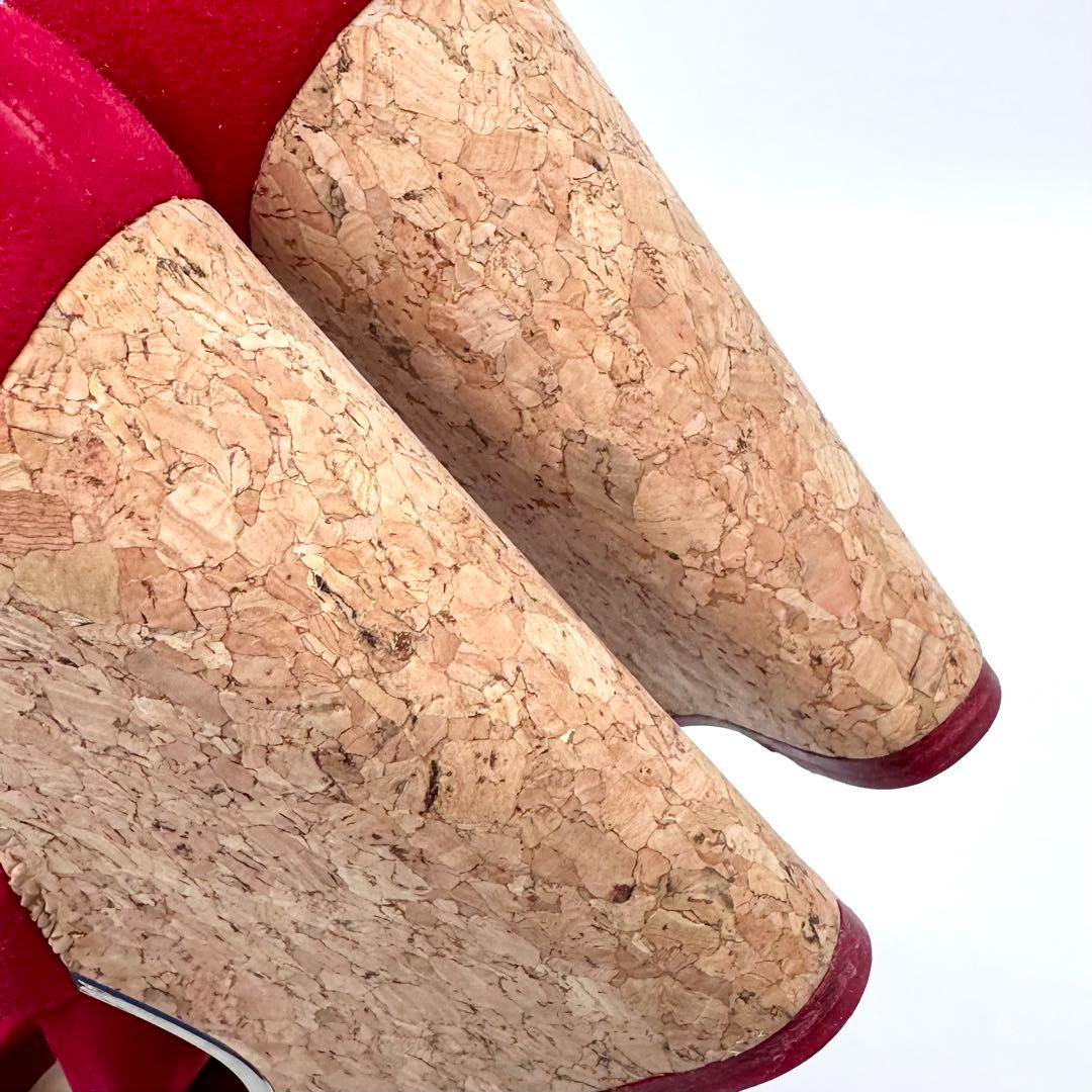как выглядит Jimmy Choo Neyo 120 Wedge Sole Open Toe Sandals Size 37 Red Suede Cork with Box фото