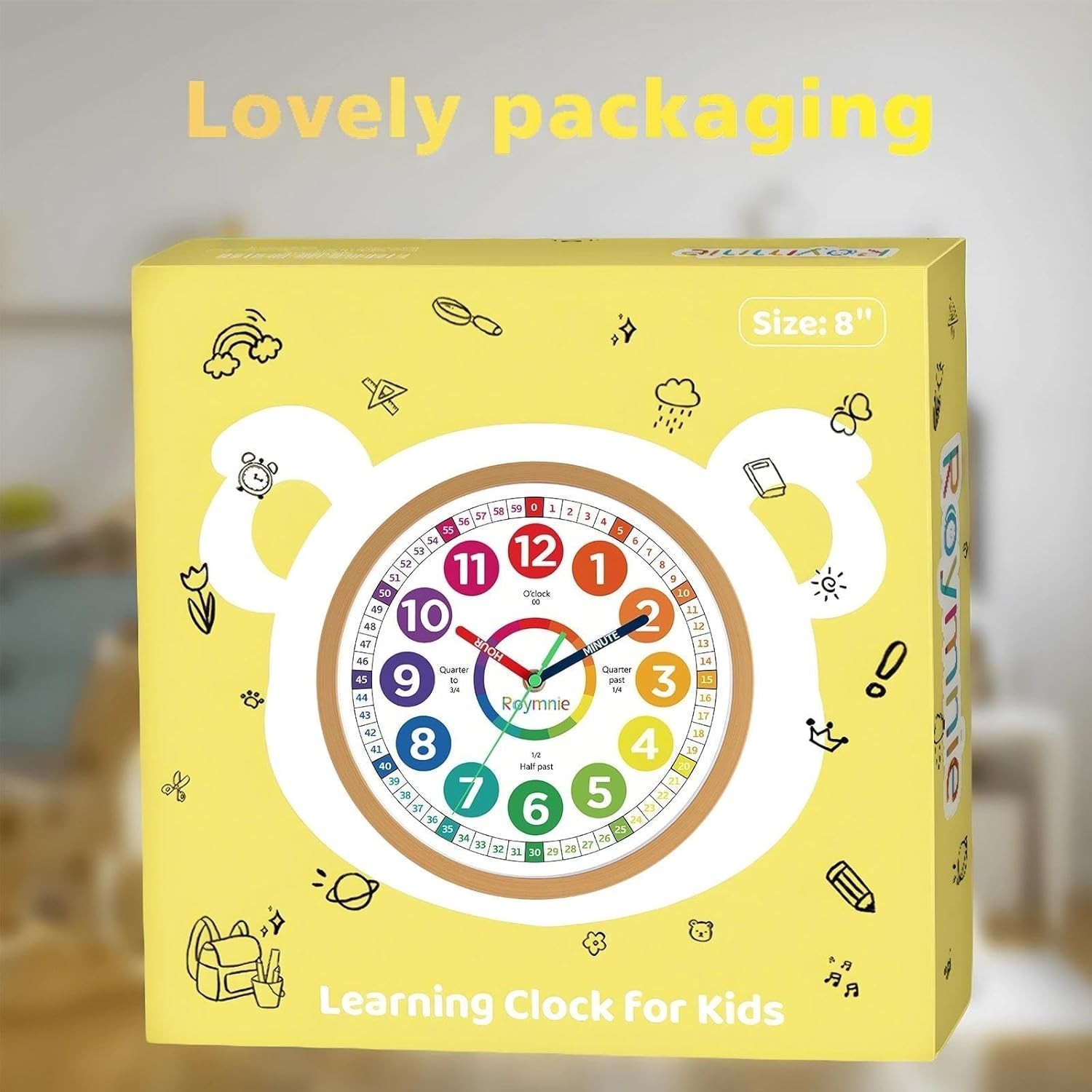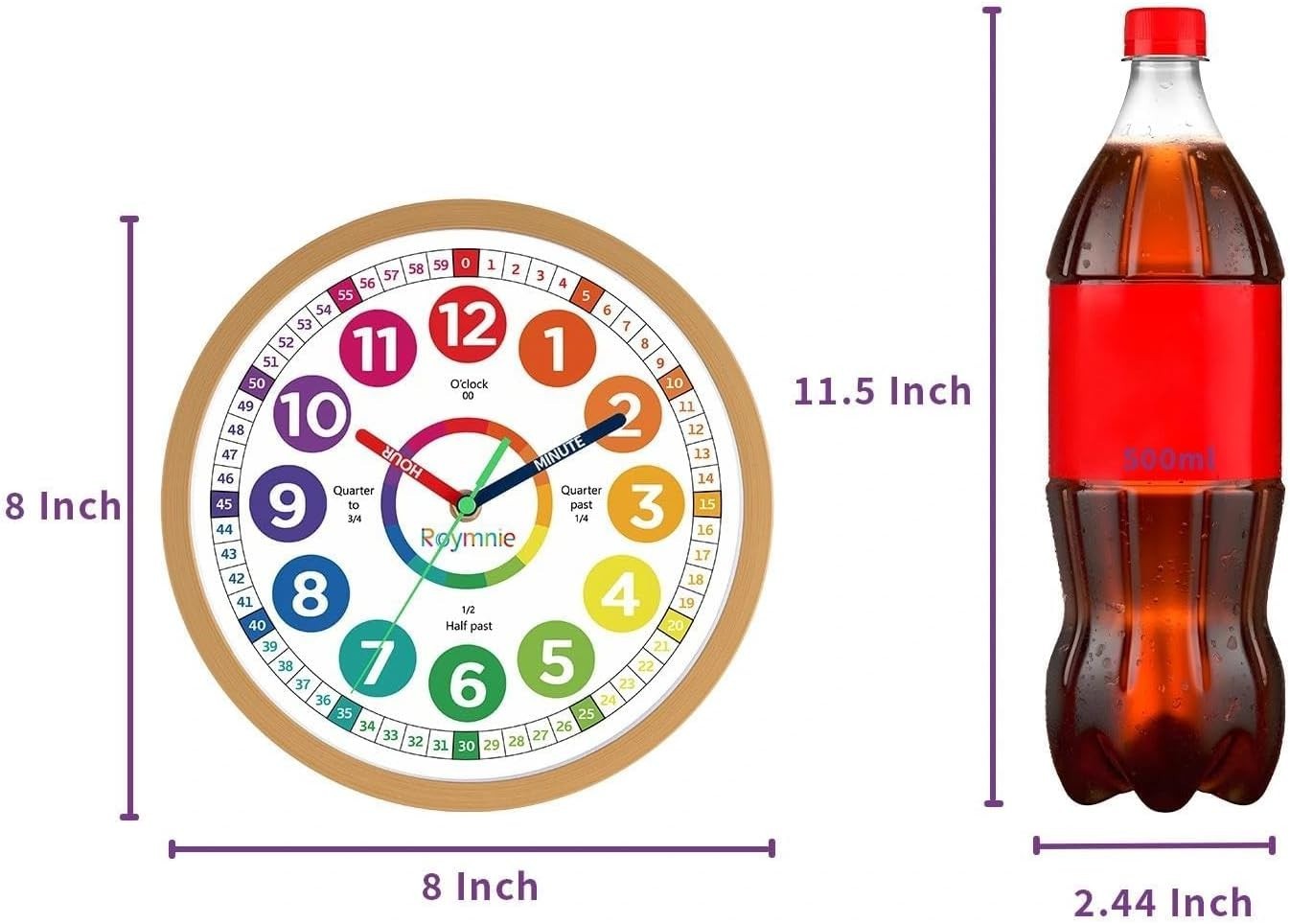 Learning Clock for Kids Telling Time Easily Teaching 8 Inch, A wood Color