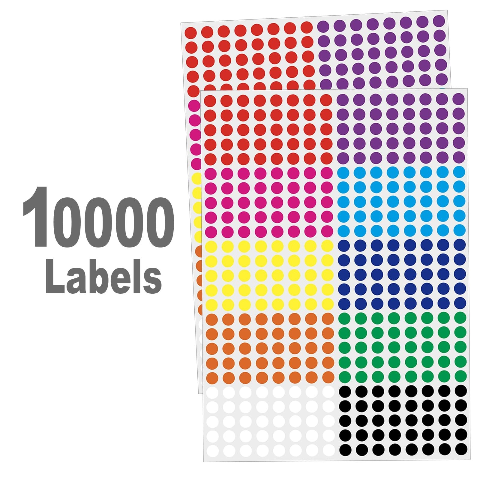 10000 Pcs 1/4 Small Colored Dot Stickers Tiny Round Labels, 10 Colors Circle...
