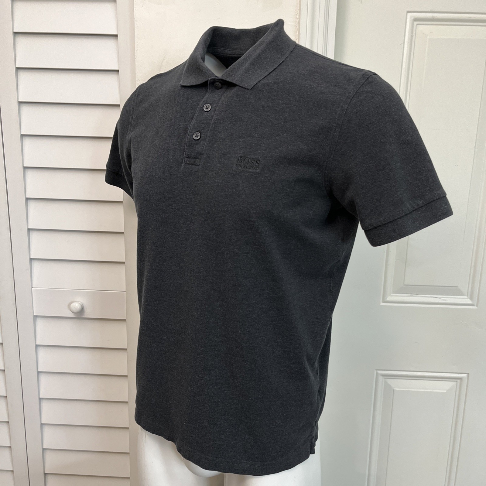 Hugo Boss Short Sleeve Polo Shirt Mens L Pima Cotton Gray Embroidered Logo