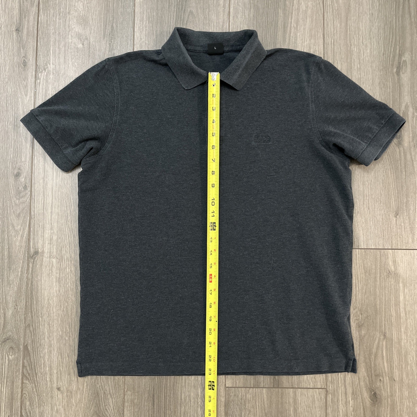 как выглядит Hugo Boss Short Sleeve Polo Shirt Mens L Pima Cotton Gray Embroidered Logo фото