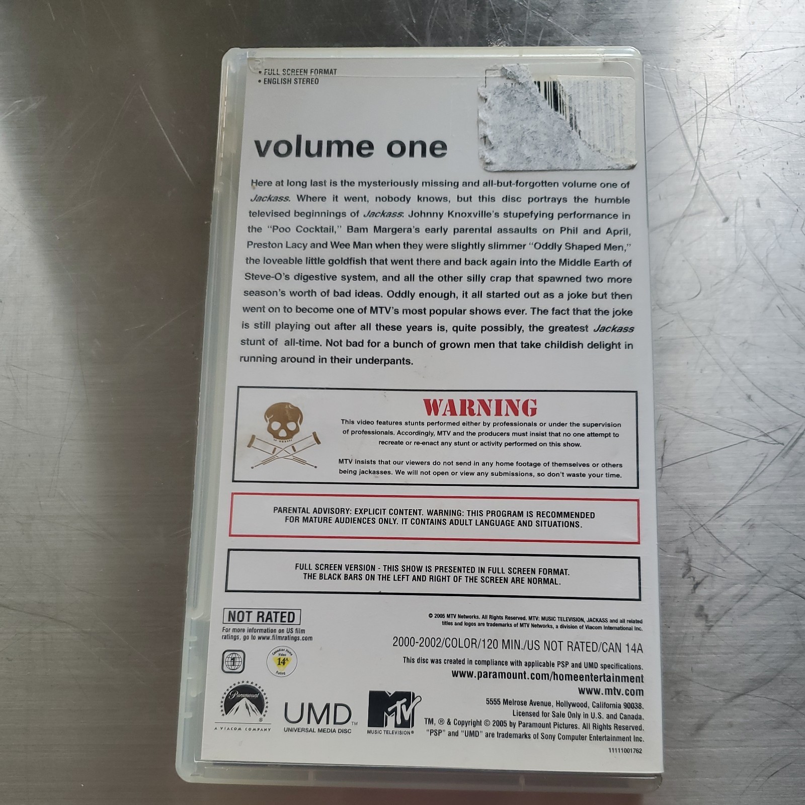 2005 Jackass Volume One Sony PlayStation Portable PSP UMD Movie Complete Tested