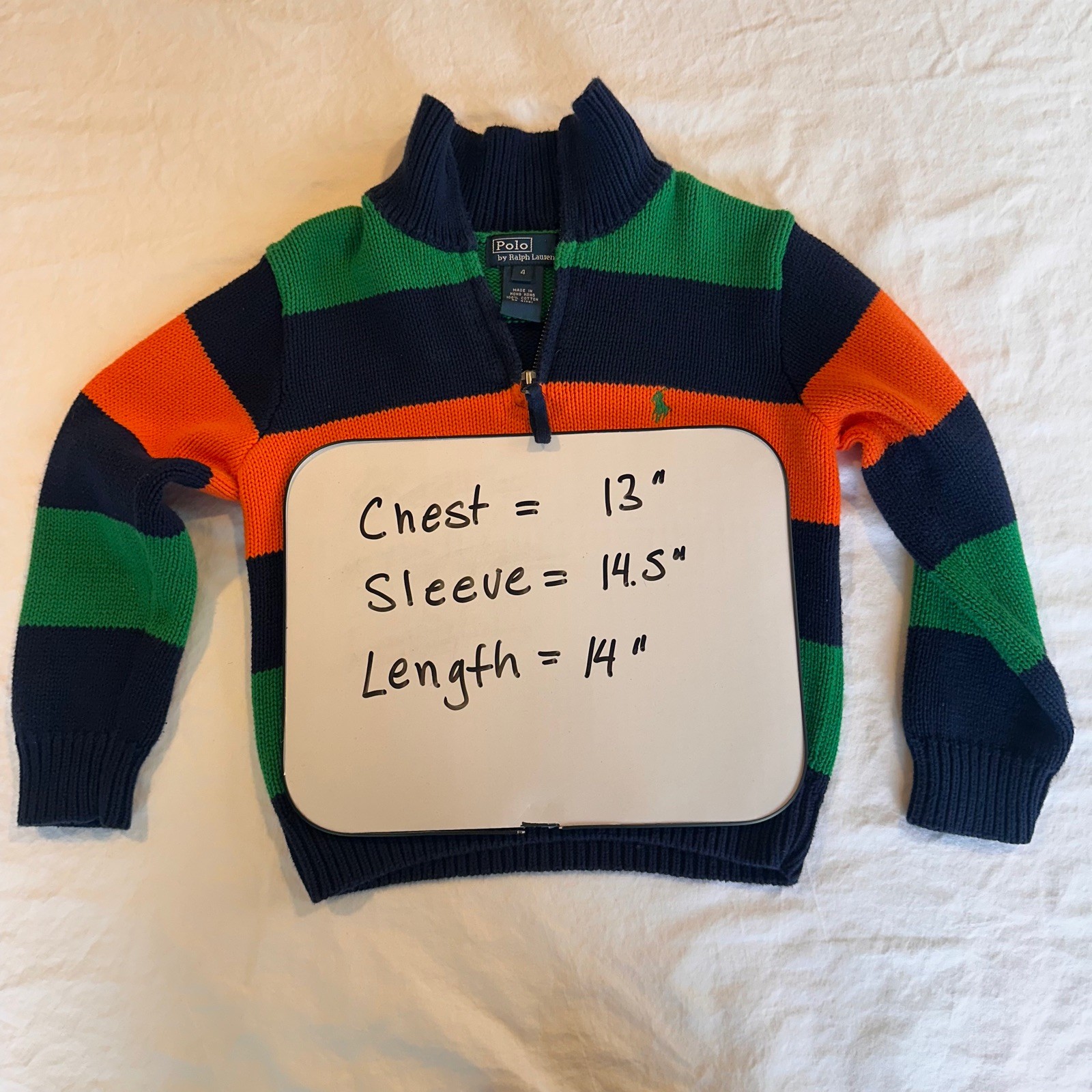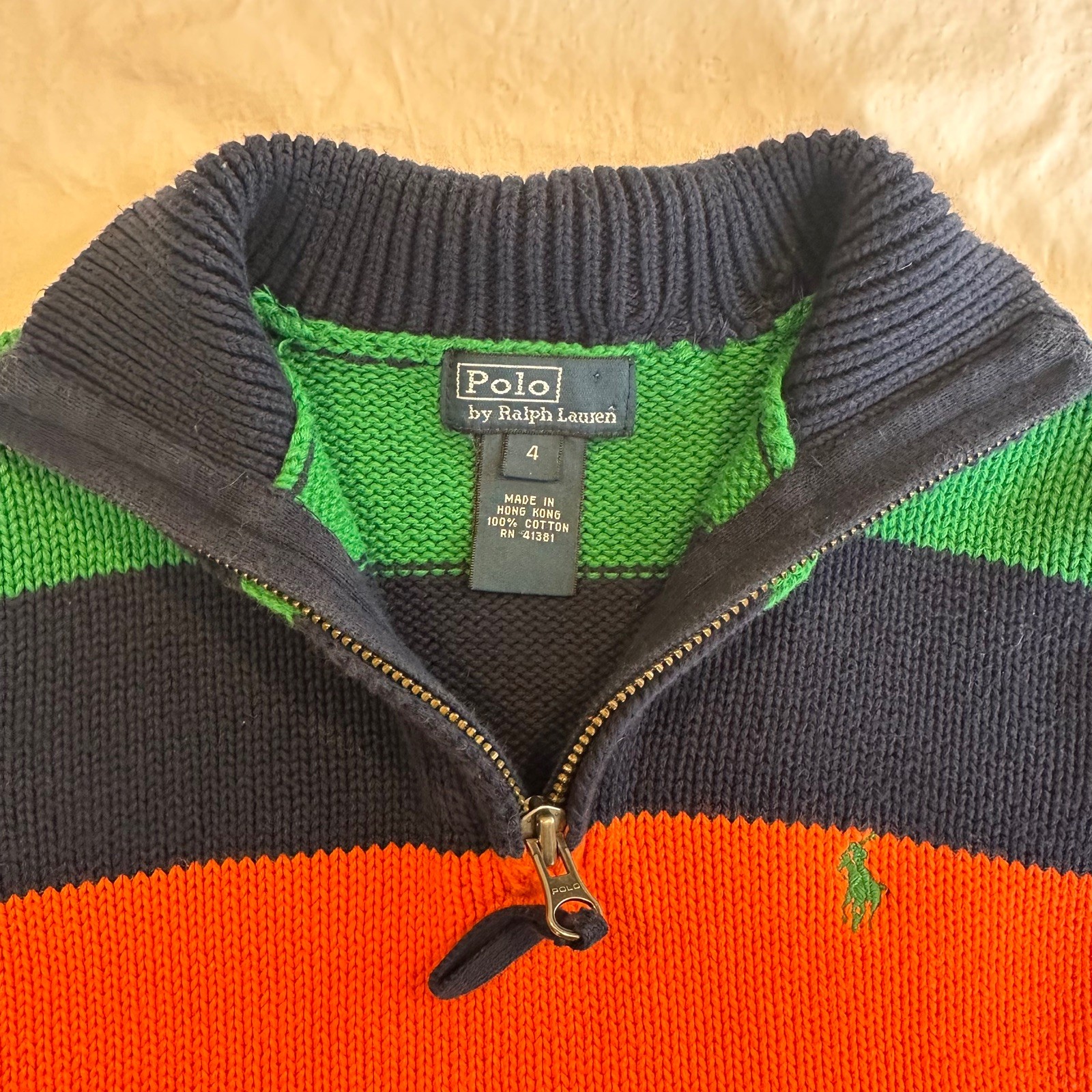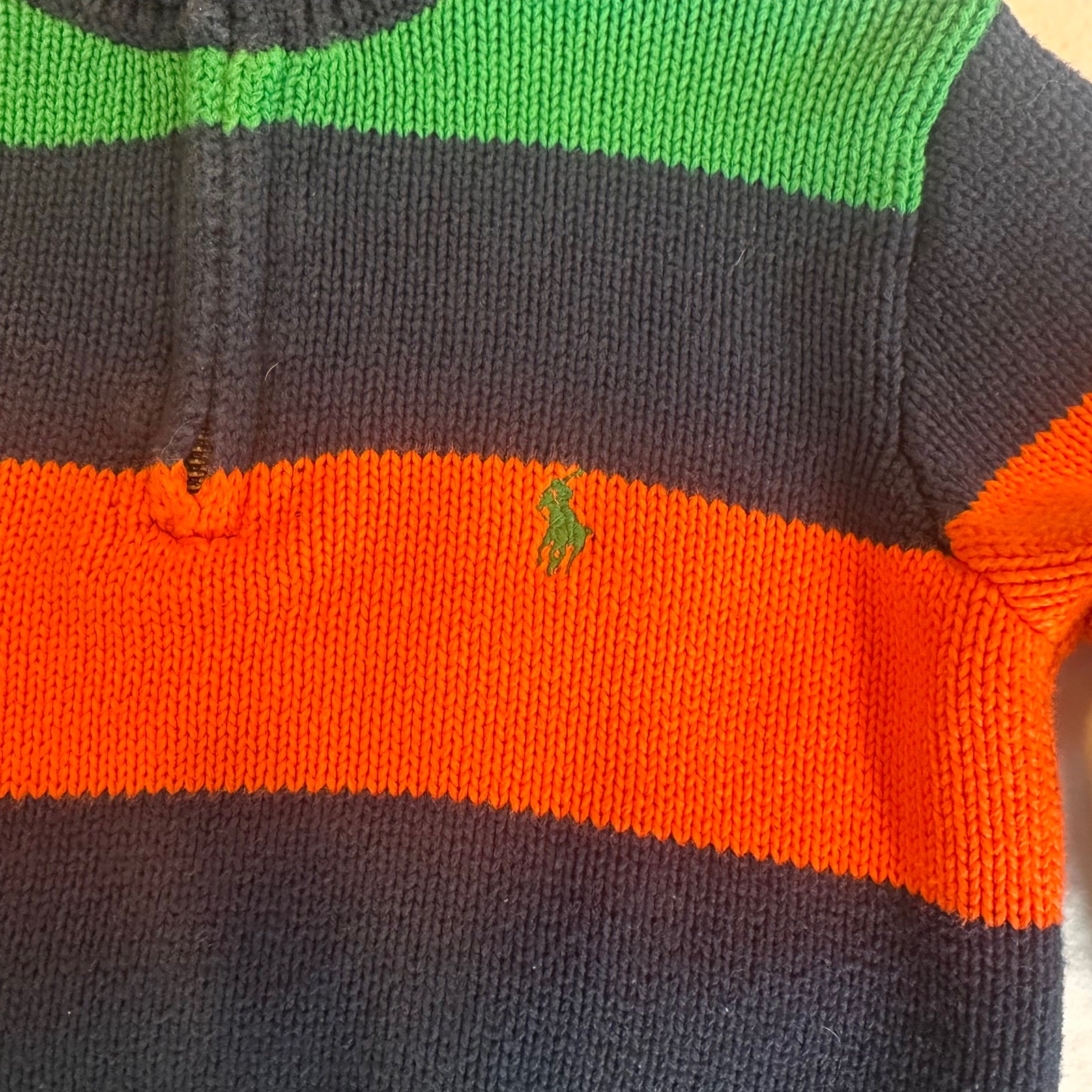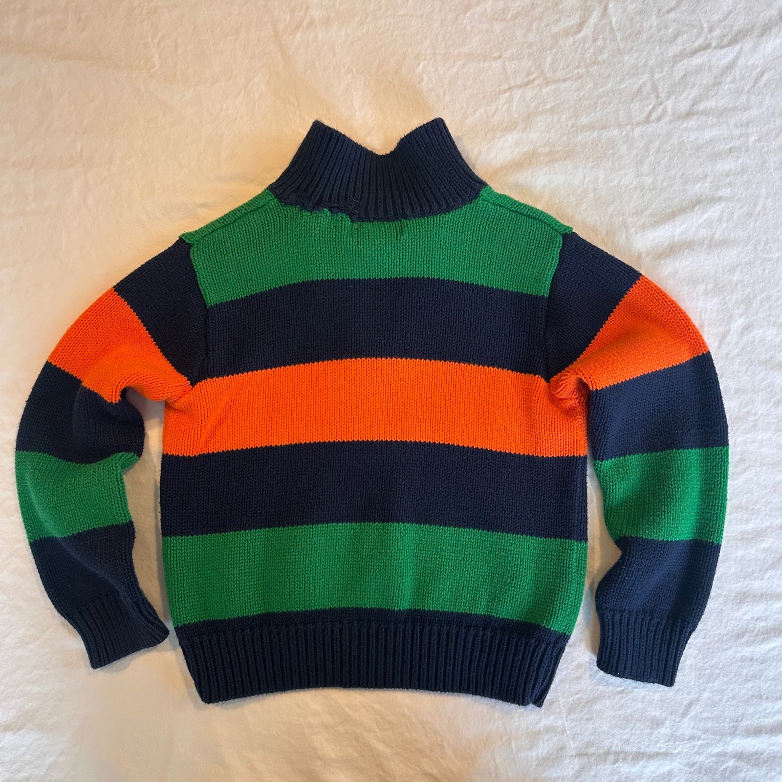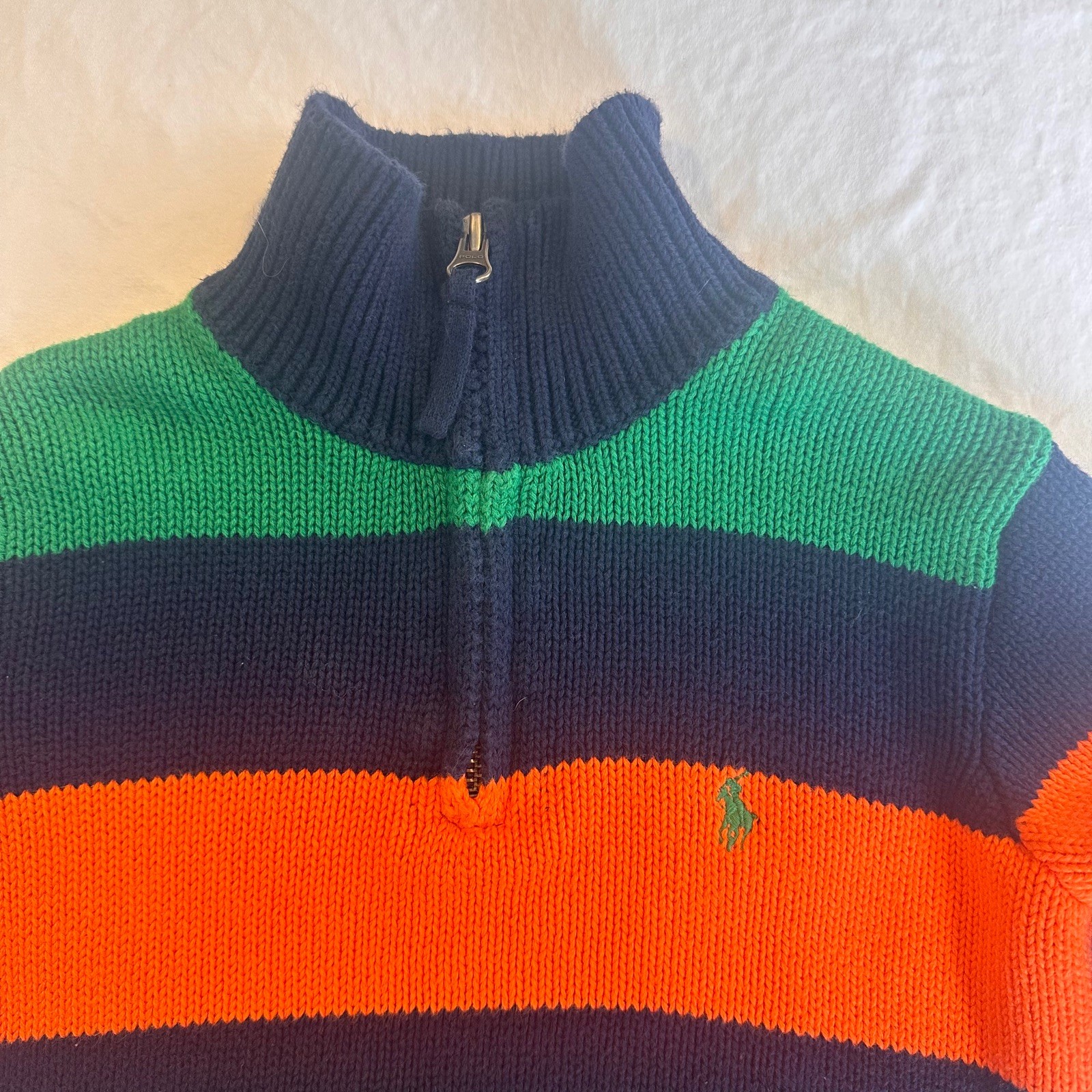 Polo Ralph Lauren Kid's Sz 4 Quarter Zip 100 Cotton Sweater: Navy Green Orange